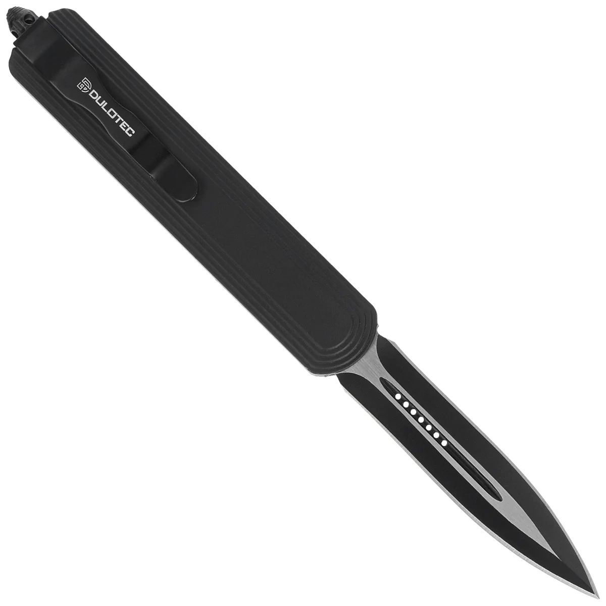 The Dulotec OTF Black Aluminum, Black/Satin 3Cr13MoV K190A-BK is a precision-engineered tool that combines modern aesthetics with functionality. The OTF (Out The Front) mechanism allows the blade to be quickly extended and retracted with a slider, ensuring quick access and safe use. The 3Cr13MoV stainless steel blade is highly corrosion resistant and easy to sharpen. Its symmetrical, double-edged dagger-type blade has a two-tone finish, with the bevels coated in black and the rest satin-finished, which emphasizes the precision of the workmanship. The handle is made of black anodized aluminum and provides a secure grip thanks to its textured surface, which prevents the hand from slipping. The two-position clip allows the knife to be carried in a tip-down position, according to the user's preference. The screw that secures the clip also serves as a window breaker, which increases the tool's functionality in emergency situations. The set includes a nylon case with a DuraFlex buckle for safe transportation of the knife. Robust design, reliable operation and an attractive price make the K190A-BK an excellent choice for users who value quality and functionality.