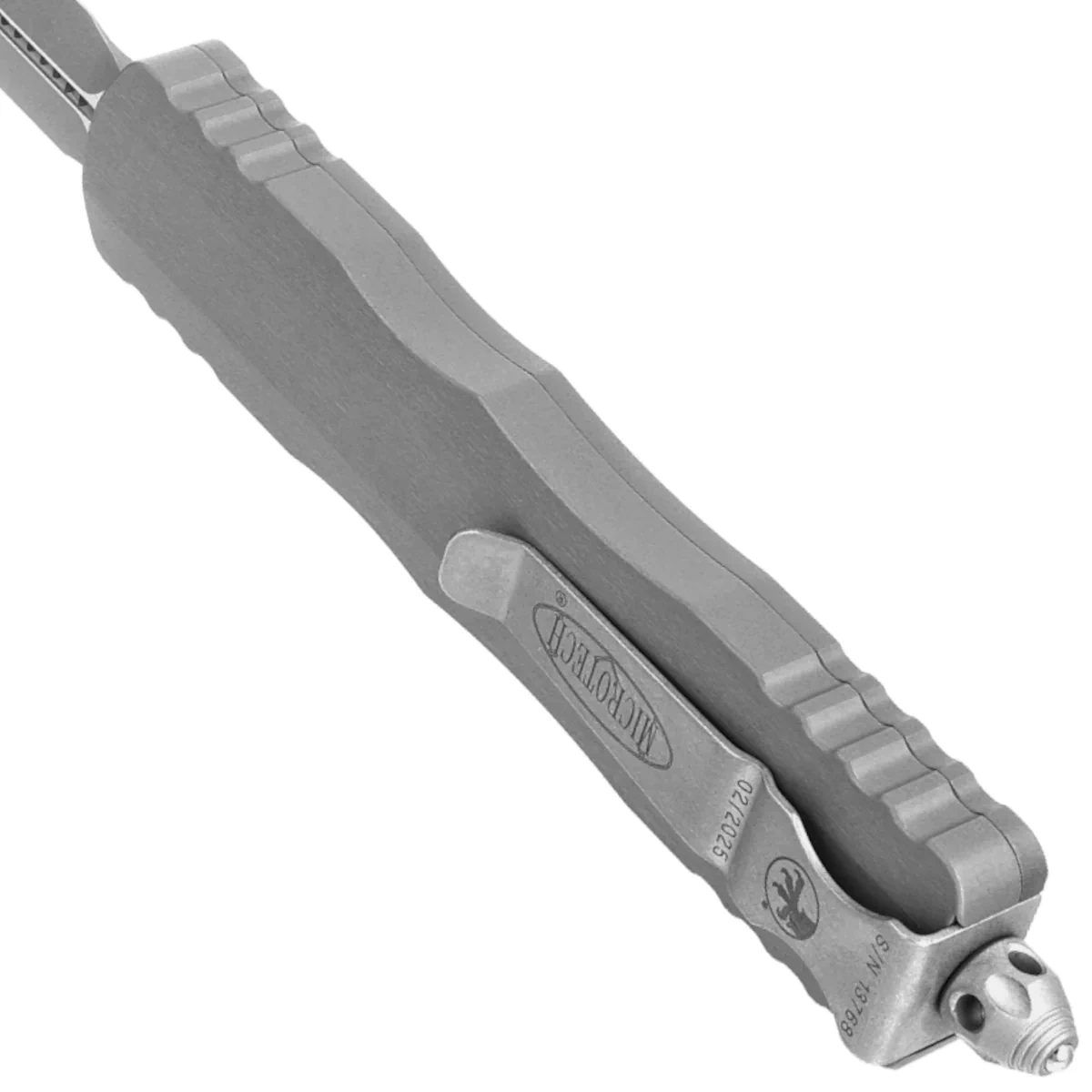 Handle - made with high precision in 3D technology on CNC milling machines, from brushed and polished aluminum 6061-T6. The surface texture of the handle ensures that the knife does not slip in the hand during use. There are jimping on the back and bottom of the handle for a more secure grip. The slider is characteristically placed in a milled depression on the side of the handle. This allows the hand to rest more naturally when opening and closing the knife. The slim profile and milled two-position (right/left) solid deep carry clip allow the knife to be carried discreetly in the pocket in a tip-down position (with the tip of the blade facing down). The clip features the Microtech logo, serial number and date of manufacture. The handle ends in a window-breaking mallet, a solid steel triangle with a pressed-in tungsten carbide ball.