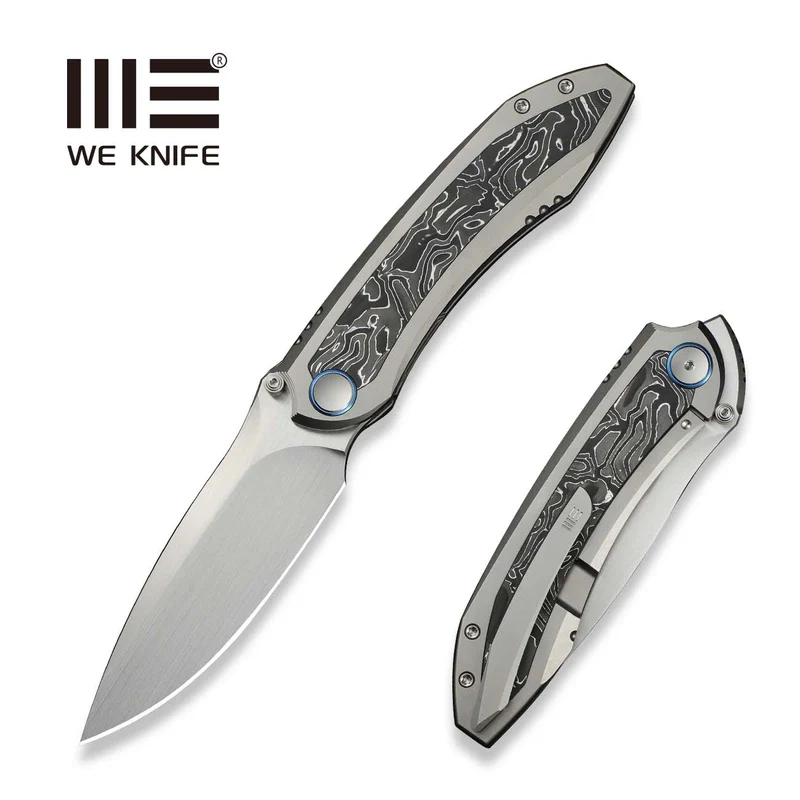 Winsome Gray Titanium/Aluminum Foil Carbon Fiber, Hand Rubbed Satin folder for users who value precision workmanship. Blade made of Böhler M390 premium steel, recognized by experts as a model of durability and long-lasting sharpness. The handle is made of durable titanium, with aluminum foil carbon fiber composite inserts with a distinctive pattern on the surface. This gives the knife an exclusive look, while improving grip and comfort. The nested frame lock guarantees safety by preventing accidental blade closure. Each element of the construction has been carefully finished to guarantee comfort of use, meeting the expectations of users looking for a unique tool that combines quality, reliability and stylish design.