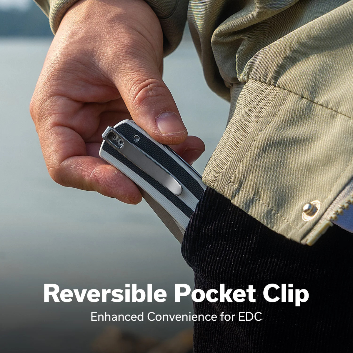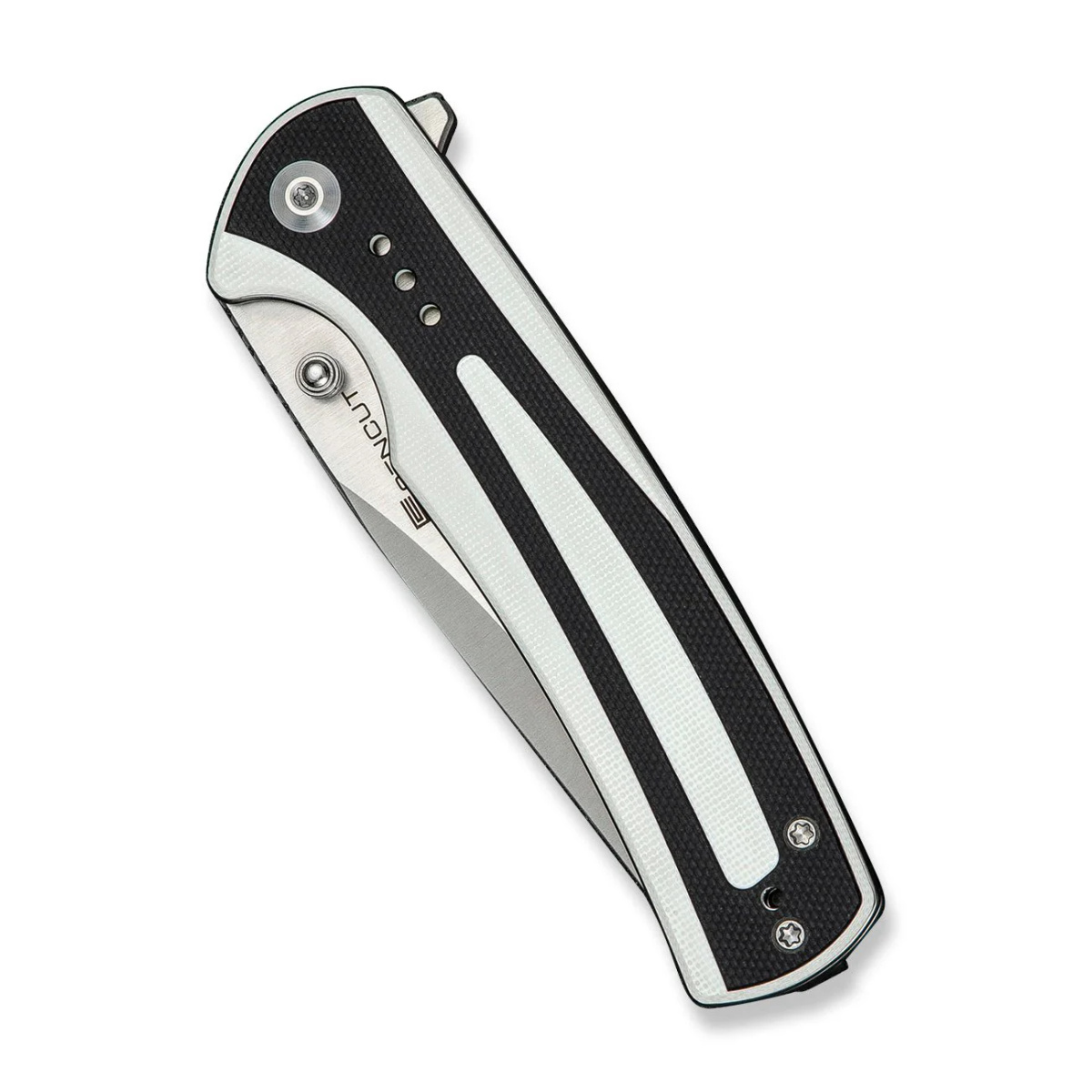 Regnator White / Black G10, Satin is an excellent E.D.C. folder with a clip point blade made by Sencut. An easy-to-carry, strong knife with a durable, wide blade suitable for intensive use. Made of good materials at an extremely attractive price, folder with stainless steel 9Cr18MoV blade and reversible clip. Simple handle made of two-tone G10 composite. Bestseller!