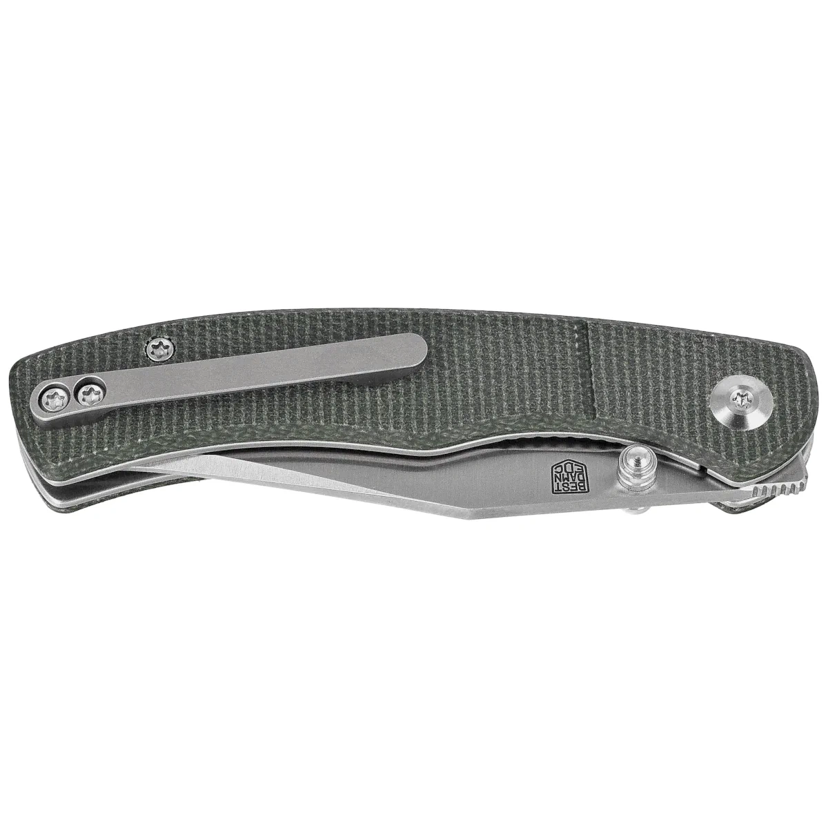 Clingman Green Canvas Micarta, Satin is an elegant, compact folder designed for demanding users. The blade was designed by the renowned expert Taylor Martin from the Best Damn EDC channel. Made of Nitro-V stainless steel, known for its exceptional corrosion resistance and ease of sharpening. The knife can be opened with a front flipper or a discreet pin in the handle, ensuring comfortable one-handed blade operation. A sturdy liner lock guarantees the stability of the blade in the open position, increasing safety while cutting. Handle made of Canvas Micarta composite, with a rough texture ensuring a firm and stable grip even in wet conditions. The straight profile of the handle makes the knife comfortable to hold, allowing for long work without fatigue. The knife's design combines utility with durability, making it ideal as an everyday tool.