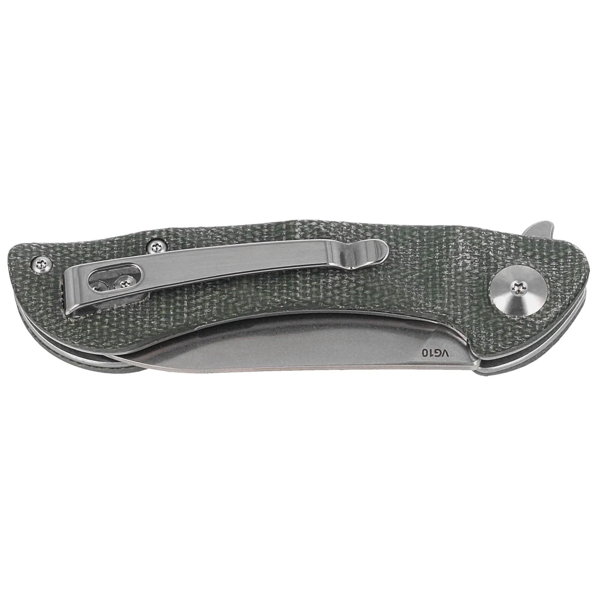 • Dripper OD Green Canvas Micarta, Stonewashed, an elegant folding knife that combines functionality with sophisticated design. The Canvas Micarta handle provides a secure grip, while the VG-10 steel blade offers durability, precision and reliability