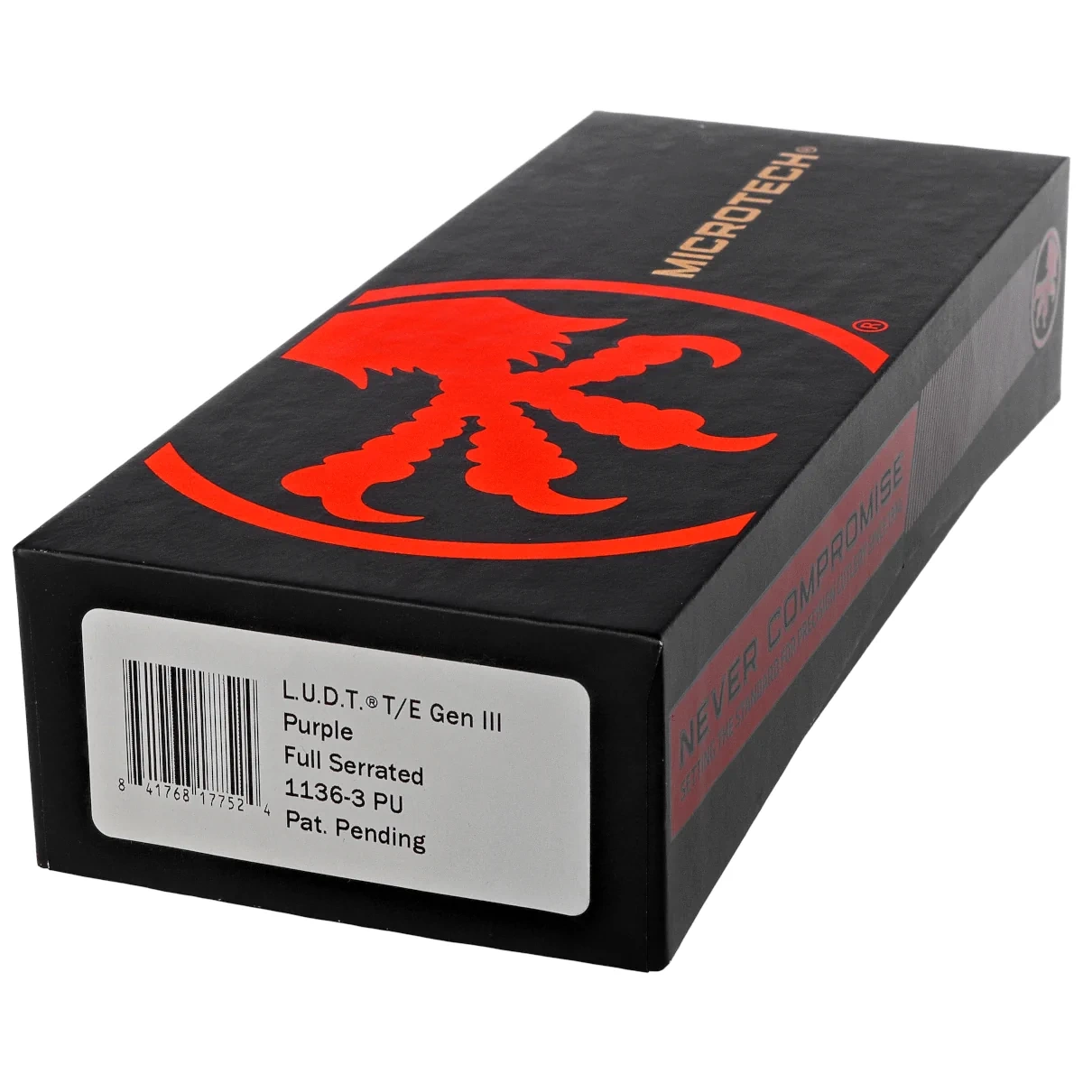 Product name: L.U.D.T.® Gen III T/E Purple Aluminum / 3M Inserts, Black Full Serrated Standard