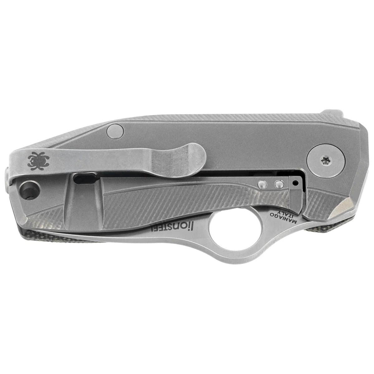 Handle - a harmonious combination of Canvas Micarta composite and titanium, which offers not only visual contrast, but also real utility value. The green Micarta grip brings lightness, texture and a natural look, while the titanium side - integrated with the R.I.L. lock - is responsible for rigidity and mechanical safety. Handle design supports comfortable handling of the knife in everyday tasks, despite its small size. Gently rounded edges, ergonomic shape and open design facilitate both grip and cleaning. Thewire clip in the tip-up position, designed for right-handed users, provides a discreet and secure hold. This is a miniature tool with full-size precision, created for the most demanding collectors and EDC users.