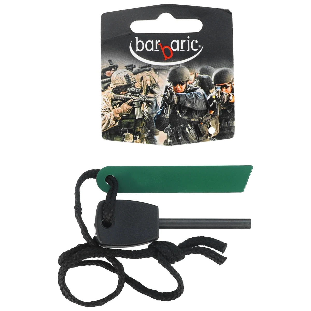 - Barbaric Fire Starter Green lightweight, compact magnesium fire starter with an attached steel striker. Works reliably in wet conditions, ideal for starting fires during survival and outdoor expeditions.