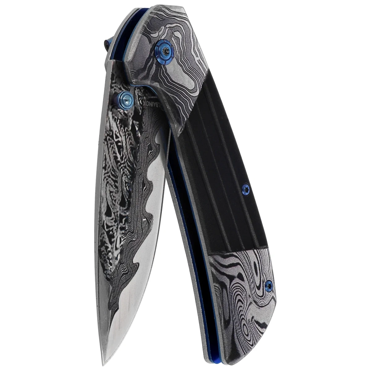 Blade - made of 3Cr13MoV stainless steel, valued for its corrosion resistance and ease of maintenance. The drop point profile gives the blade versatility - it works well for precision tasks as well as simple everyday jobs. The three-dimensional 3D finish, reminiscent of Damascus steel, visually enriches the blade without affecting its performance. Opening is aided by a double-sided thumb stud or flipper, and a liner lock stabilizes the blade in the open position. The blade of the 18918 model combines simplicity of use with decorative aesthetics – ideal for everyday use and ready to be displayed in a collection.