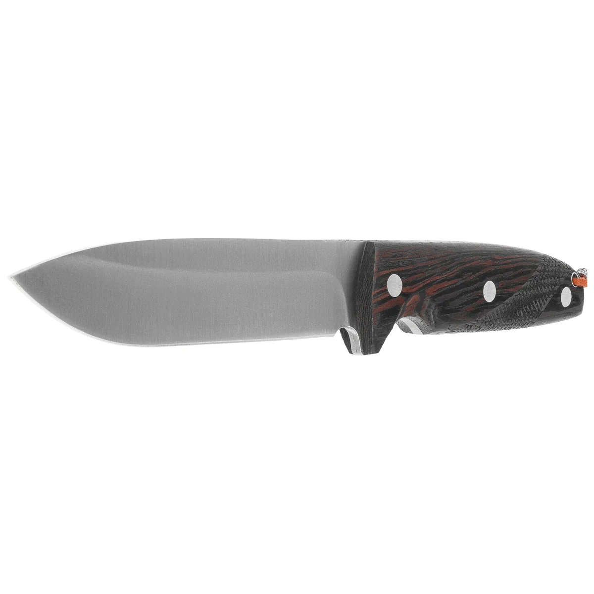 The 32671 Wenge Wood, Satin 3Cr13MoV is a classic field knife that combines simple design with the utility reliability and elegance of natural materials. Designed for camp tasks, daily use in the field and hunting activities, it features a full tang construction based on a full tang bolster and a blade made of corrosion-resistant 3Cr13MoV stainless steel. Blade with satin finish provides an aesthetically pleasing appearance and makes it easy to keep clean, while the drop point profile guarantees versatility and comfort. The natural wengé wood handle provides stability and a comfortable grip in varying weather conditions. It comes with a leather sheath for convenient attachment to the belt. This tool is designed for users who appreciate durability, classics and practicality in one compact outdoor knife.