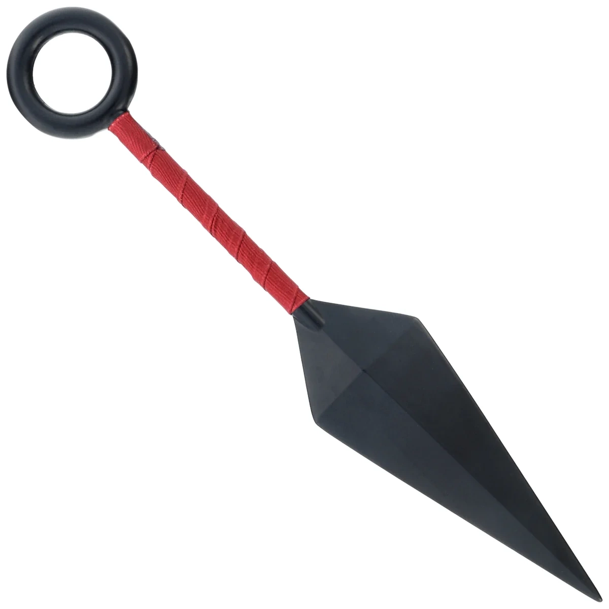 - 32678 Maroon Cord, Black Zamak – a training kunai knife made of black zamak, with a handle wrapped in maroon cord. Symmetrical, safe design for learning combat techniques and martial arts demonstrations.