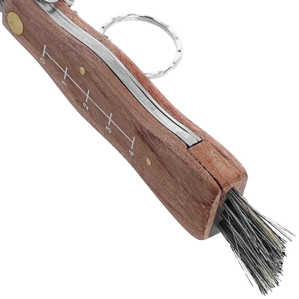Handle - made of natural wood is distinguished by the printing of a ruler to facilitate the measurement of harvested mushrooms. In the back there is a brush made of natural bristles, allowing to pre-clean mushrooms without the need to carry separate accessories. Built-in metal tweezers allow thorough removal of needles and mosses. A key ring with a short chain makes it easy to attach to a backpack or pants, and the included pouch supports convenient carrying in the field. The ergonomic shape and well-balanced balance of the Handle guarantee comfort even for extended periods of use. This is a construction designed for efficient mushrooming - lightweight, handy and resistant to field conditions.