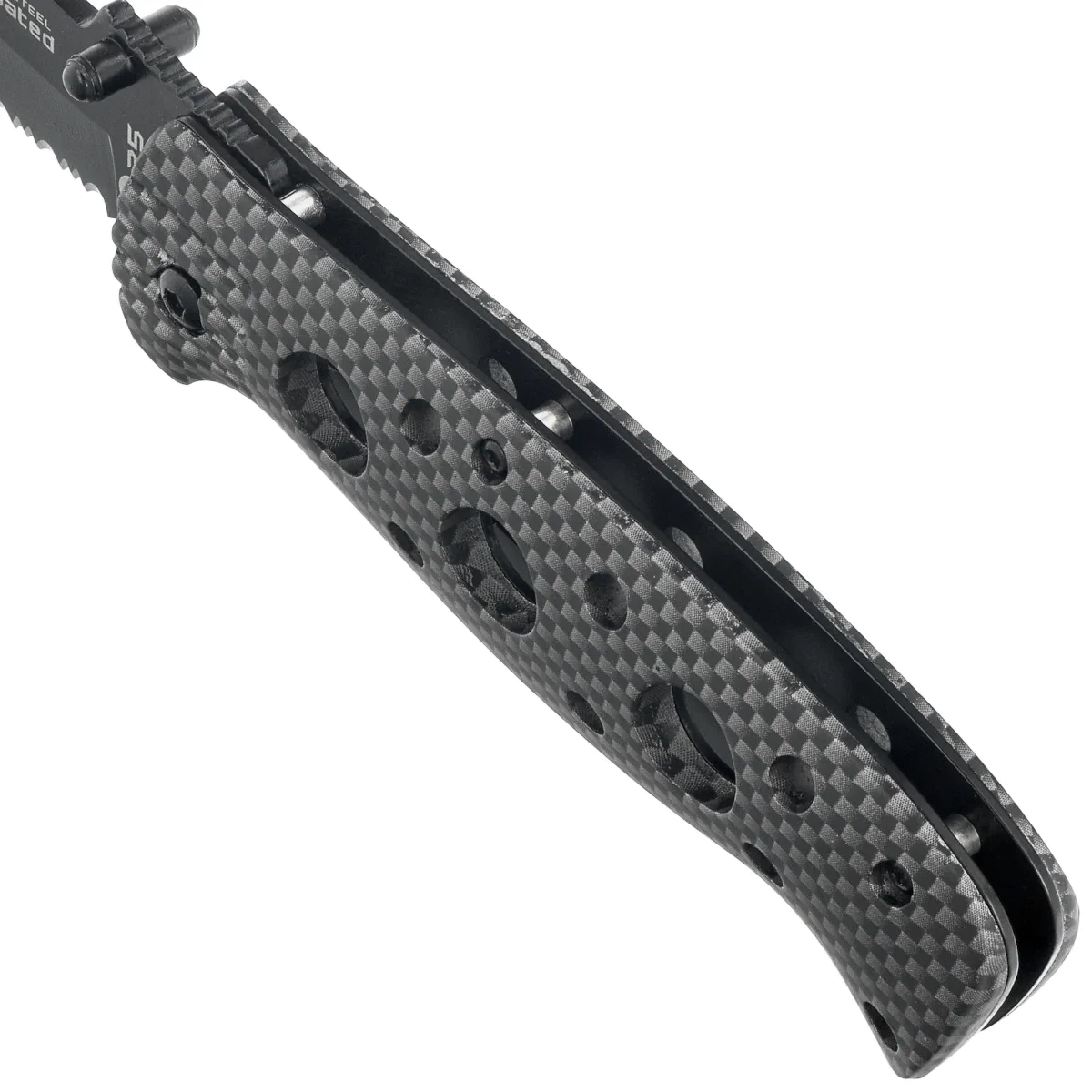 Blade - drop point type , made of 7Cr17MoV stainless steel, provides good cutting properties and weather resistance. Thanks to black titanium coating, the blade gains increased scratch resistance and anti-reflective effect. The opening mechanism with a pin in the wedge allows the blade to be quickly unfolded with one hand, and the liner lock prevents accidental folding during use. The blade geometry has been optimized for versatile EDC tasks - from simple cuts to technical and emergency operations. The compact size and folding form make this model ideal for everyday carry.