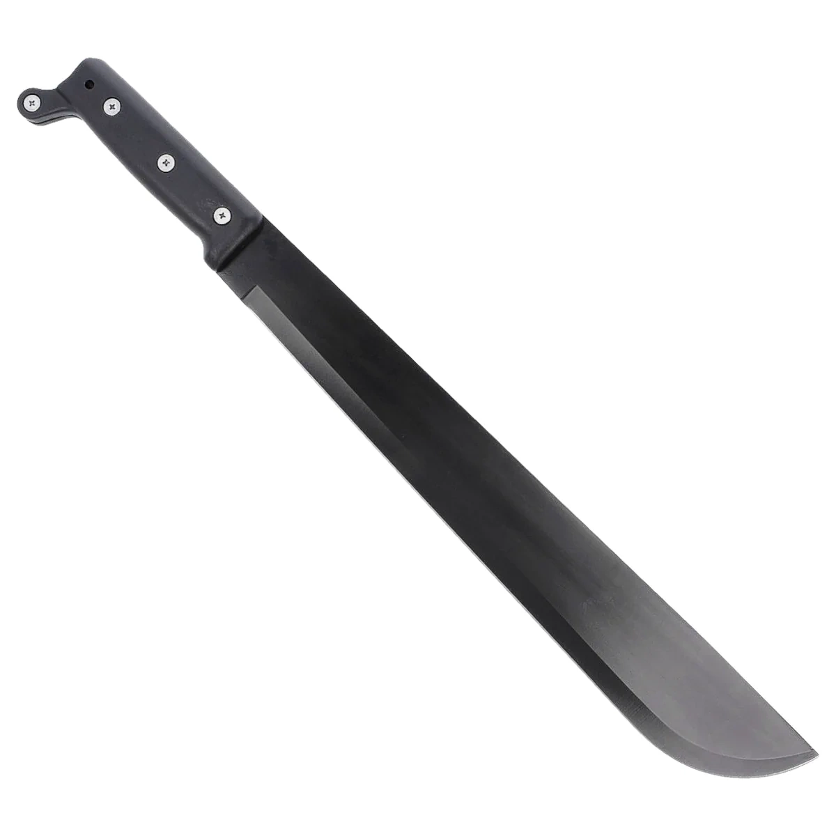 Blade - Straight Back made of 3Cr13MoV stainless steel, which provides resistance to moisture and ease of sharpening in field conditions. Black protective coating improves mechanical resistance and prevents light reflections. The straight profile and full flat grind promote dynamic cuts and increase efficiency when working with thicker vegetation. The long cutting edge allows for wide sweeps, and the robust blade geometry translates into efficiency in tasks that require a lot of force. The full tang design ensures the stability of the entire tool and eliminates the risk of breakage at the connection points.