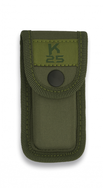 • K25 Knife Pouch, Belt / Molle Green 120mm - rugged case made of green ballistic nylon, compatible with MOLLE systems and waist belts. For Handles up to 100mm. Convenient, safe and durable field solution.