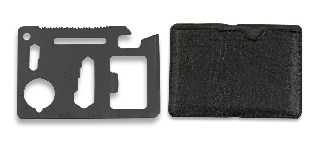 • Multi Purpose Card (33921) - Barbaric universal survival card in credit card format, made of stainless steel, with EDC functions: screwdriver, opener, ruler, saw.