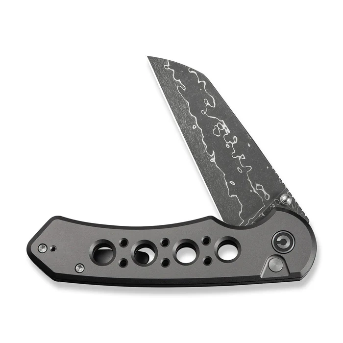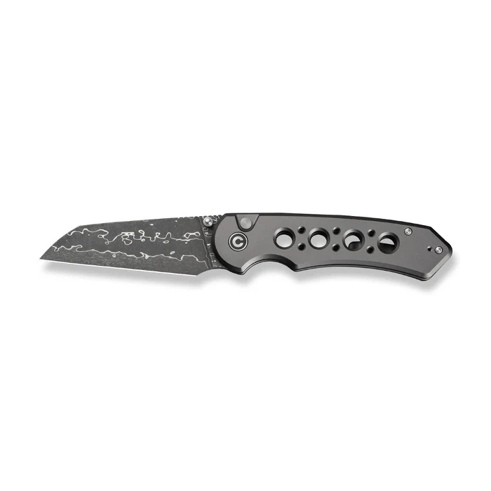 - Pragma Prime Gray Aluminum, Damascus - slim Civivi EDC folder with Wharncliffe profile Damascus steel blade, comfortable aluminum handle, intuitive button lock. Ergonomics and precision in a compact form.
