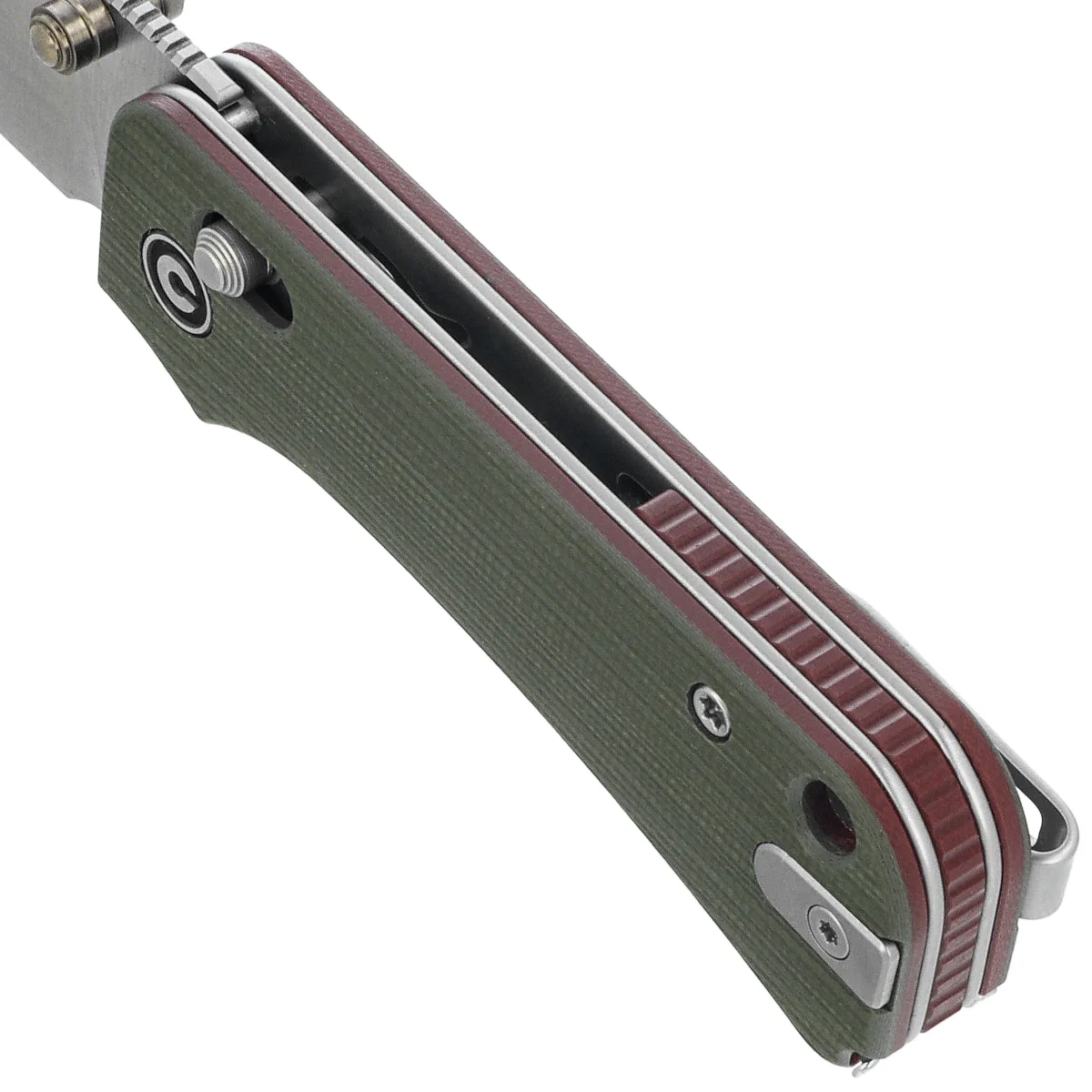 Handle - two durable pieces of G10 composite. The whole bolted to a solid backspacer, also made of G10. The pivot axis is decorated with a stylized Civivi brand logo. A two-position left/right metal deep-carry clip allows you to carry the knife discreetly in your pocket in tip-up position (blade tip up). Hidden in the Handle are two useful tools, a steel tweezer and a toothpick. On the back of the Handle lanyard hole , a hole for a rope.