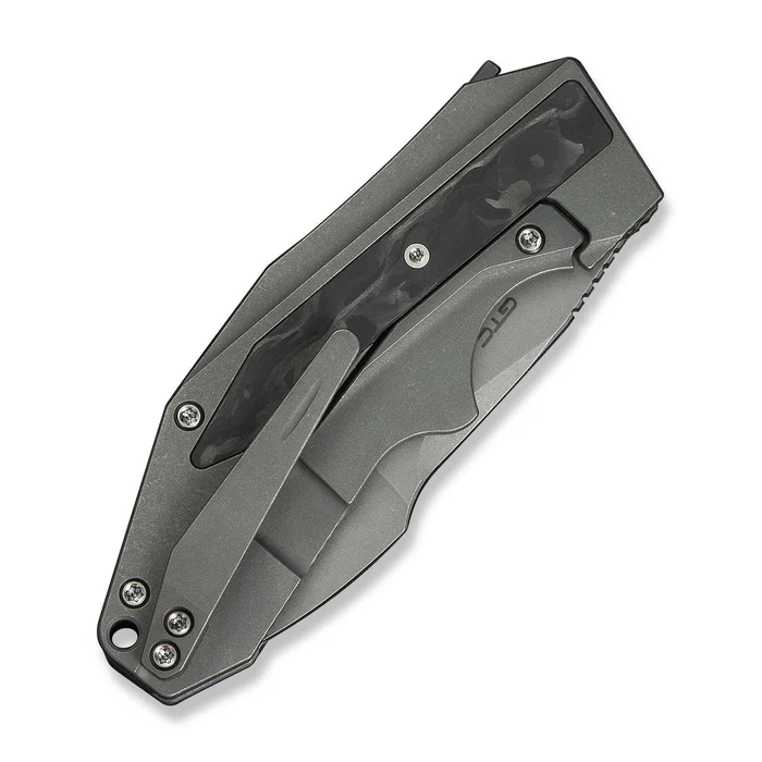 Coral SLT Gray Titanium/Marble Carbon Fiber, Gray Stonewashed is a modern EDC folder by Gustavo T. Cecchini, combining advanced material engineering with high-end segment aesthetics. Sleek form, refined details and perfect workmanship in the WeKnife manufactory make this model an excellent utility and collector's tool, aimed at the most demanding users. Blade with spear point profile is made of CPM 20CV powder steel , providing excellent abrasion resistance, exceptional cutting edge stability and full corrosion resistance. The Gray Stonewashed finish gives the blade a modern character, effectively masking micro-scratches and signs of use. The blended grind promotes smooth cutting action with minimal resistance, resulting in high efficiency and versatility in everyday EDC applications. The Handle is made of milled titanium 6Al-4V, complemented by Marble Carbon Fiber inlays that introduce a visual depth effect and improve grip with a subtle composite texture. Ergonomic profiling and precise rounded edges ensure comfortable and stable operation even during prolonged use. The opening mechanism is based on SLT flipper working on ceramic ball bearings, which guarantees a lightning-fast and smooth unfolding of the Blade. The Frame Lock stabilizes the blade in the open position, ensuring the safety of the user. The whole is complemented by a titanium tip-up clip