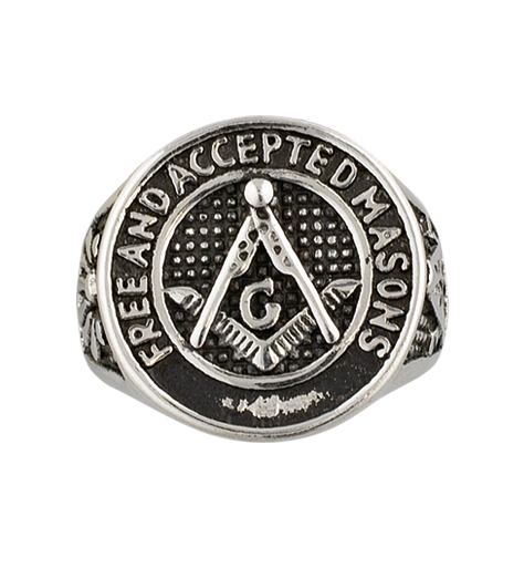 - Masons Ring Ø19, a freemasonry signet ring with a caliper, a carbuncle and the letter “G”, surrounded by the inscription Free and Accepted Masons. Patinated, ritual symbolism and side details - for enthusiasts of esoteric and the history of Freemasonry.