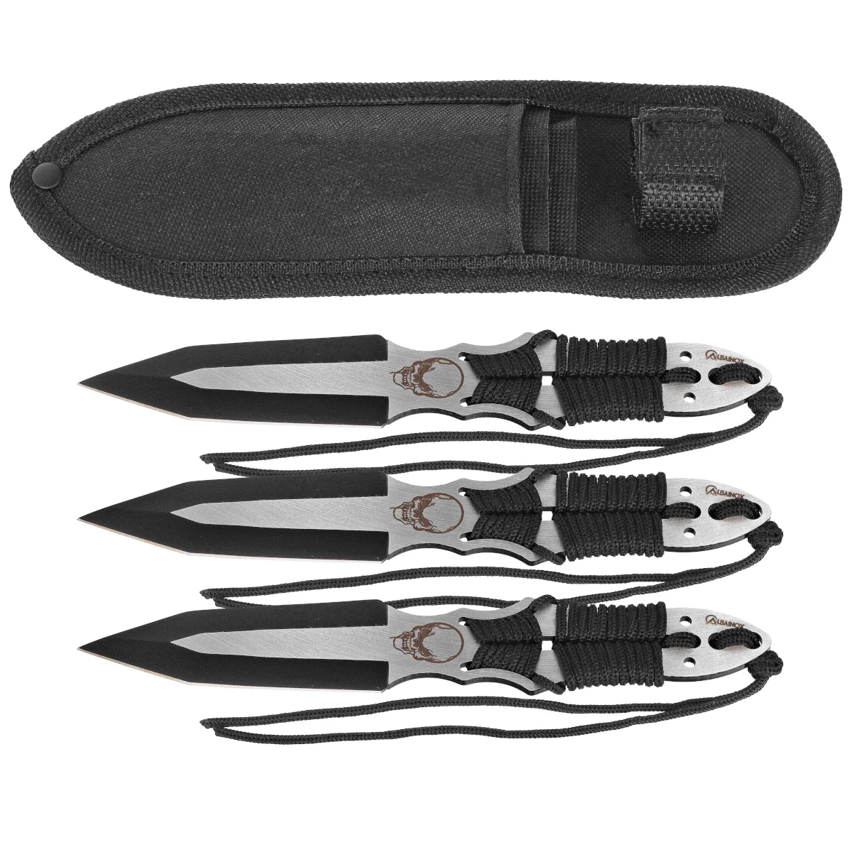 • Skulls Set 3 pcs Black Paracord, Black3Cr13Mov - set of dart throwing knives with full tang construction, made of stainless steel and wrapped in black paracord. Comes with a nylon carrying sheath with compartments.