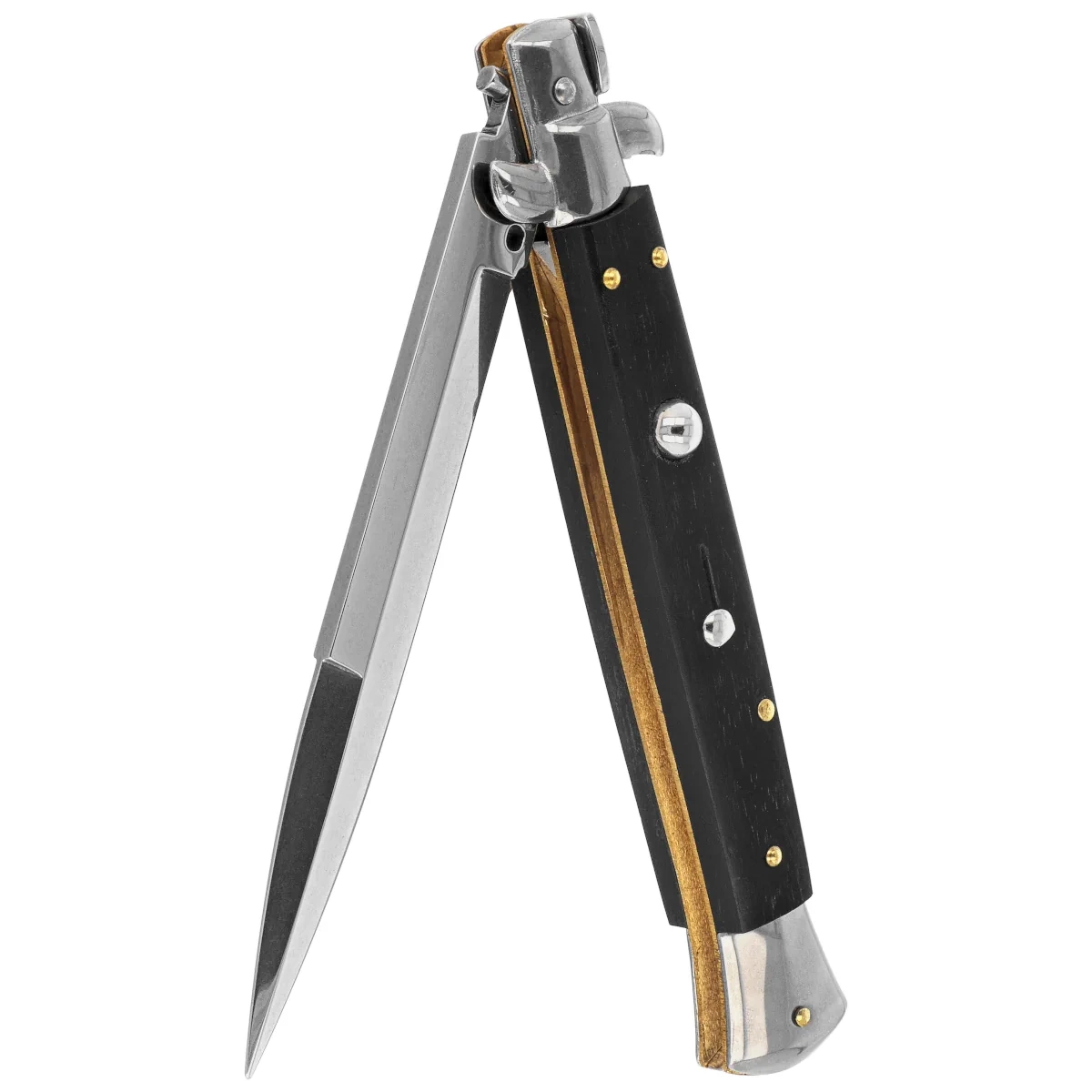 • Frank Beltrame Bayonet Ebony 28 cm - a classic spring knife handmade in Italy. Handle made of ebony wood, 420 stainless steel, traditional push-button mechanism. A combination of style, precision and craftsmanship.