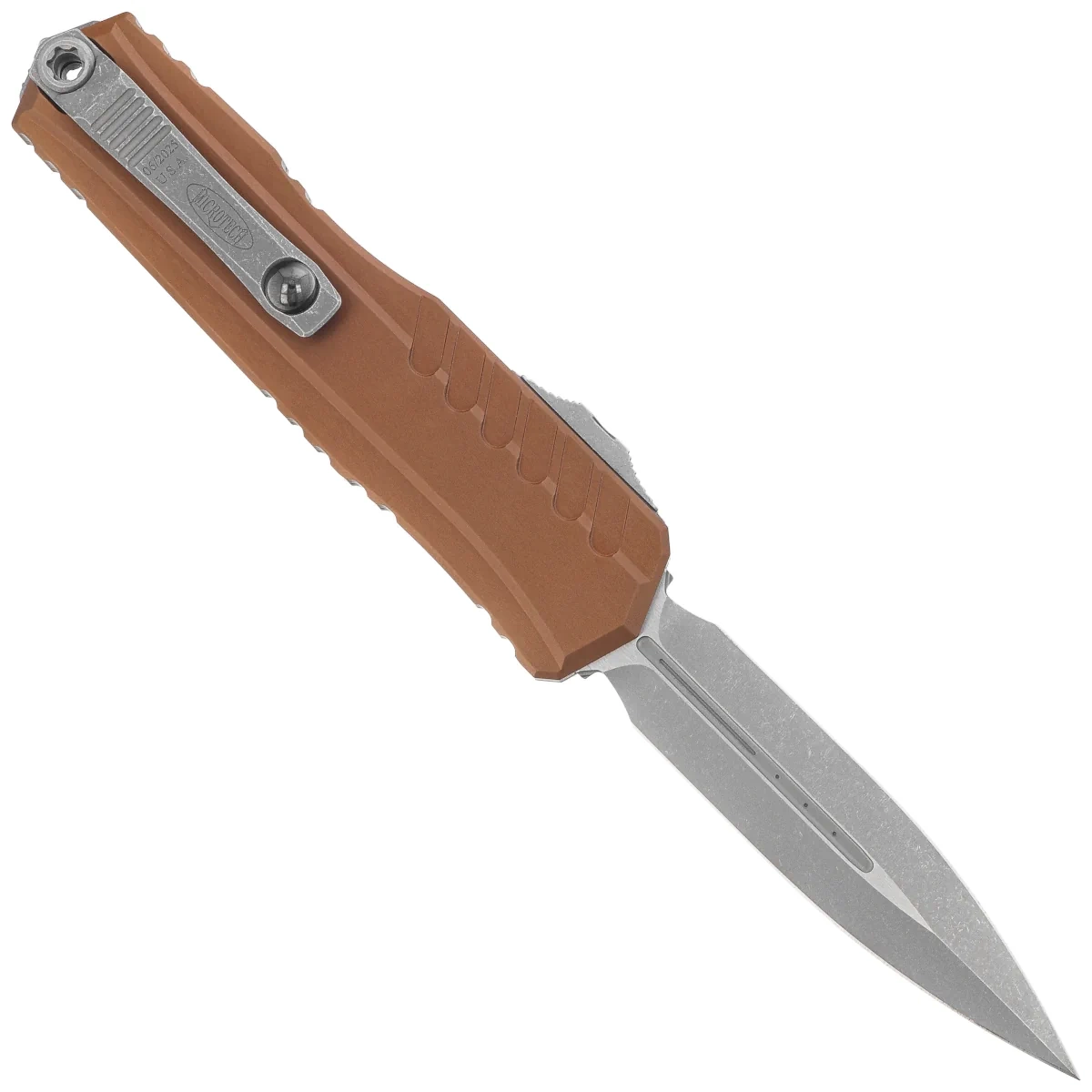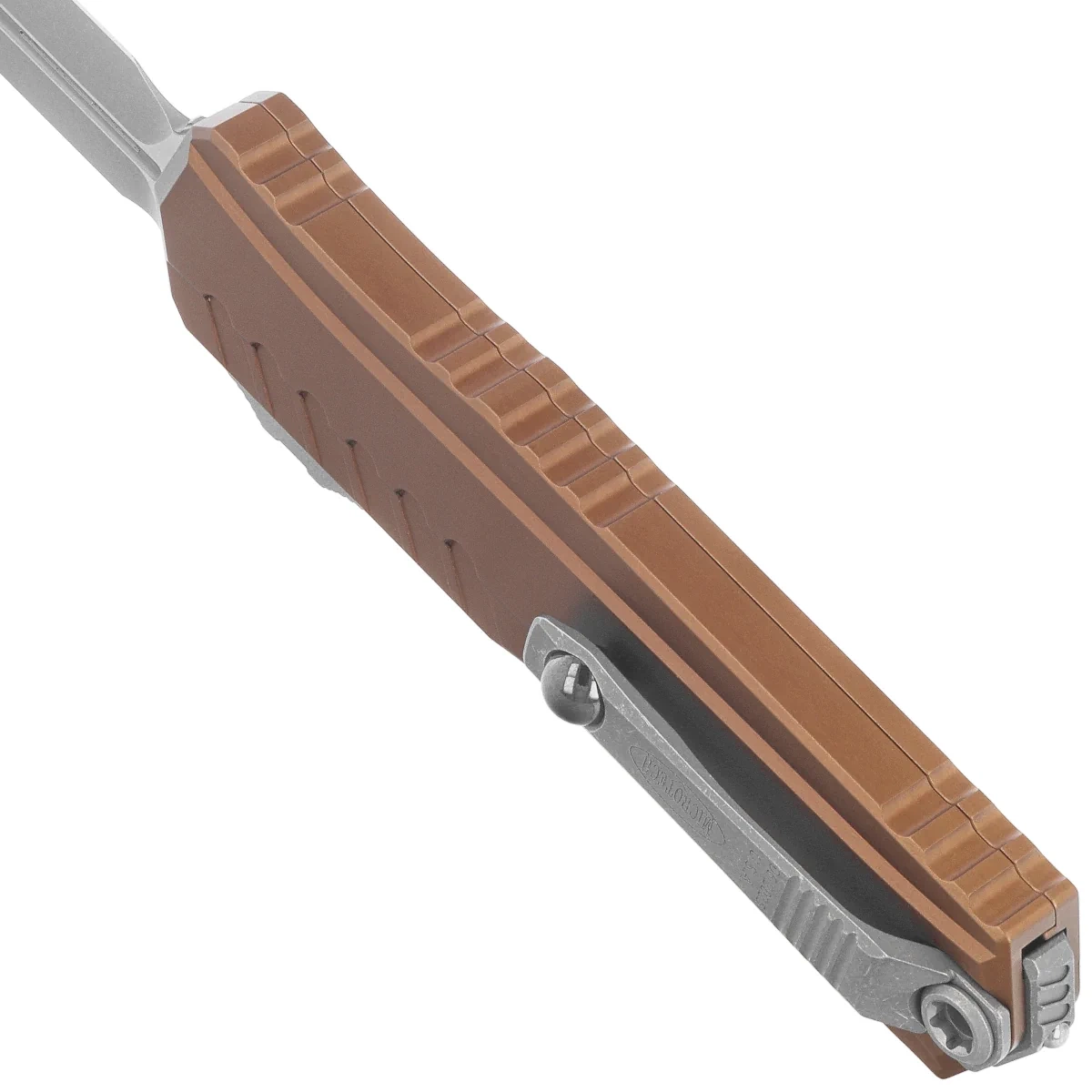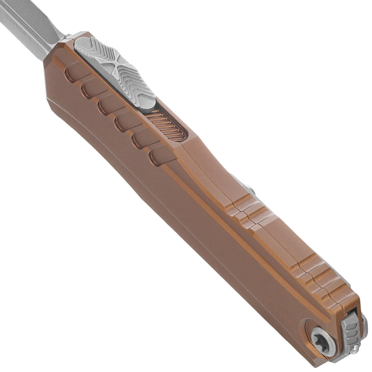 Microtech Cypher II D/E OTF Knife Tan Aluminum, Apocalyptic M390MK by Deryk Munroe and Tony Marfione (1242-10APTA)