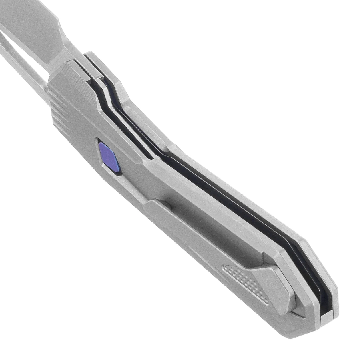 Handle - 6AL4V titanium exoskeleton, to which a CNC-milled sheath of the same material is attached. The surface finished with Ceramic Sandblasting increases wear resistance and facilitates grip even with wet hands. A push-button mechanism allows quick removal of the grips - important for maintenance-conscious users. The design is complemented by a tip-up titanium deep carry clip and a lanyard hole. The whole is supplied in a branded nylon case, which ensures safe carrying of the knife on a daily basis and on the go.