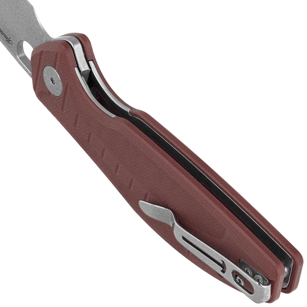 Handle - made of G10 composite guarantee lightweight, high strength and secure grip even in wet conditions. Textured surface improves grip without causing excessive wear. Button lock ensures easy locking and unlocking of the blade, while the blade opening promotes quick opening. A reversible deep carry clip allows discreet carrying, while a lanyard hole enhances attachment options. Ergonomically shaped handle provides comfort during prolonged use.
