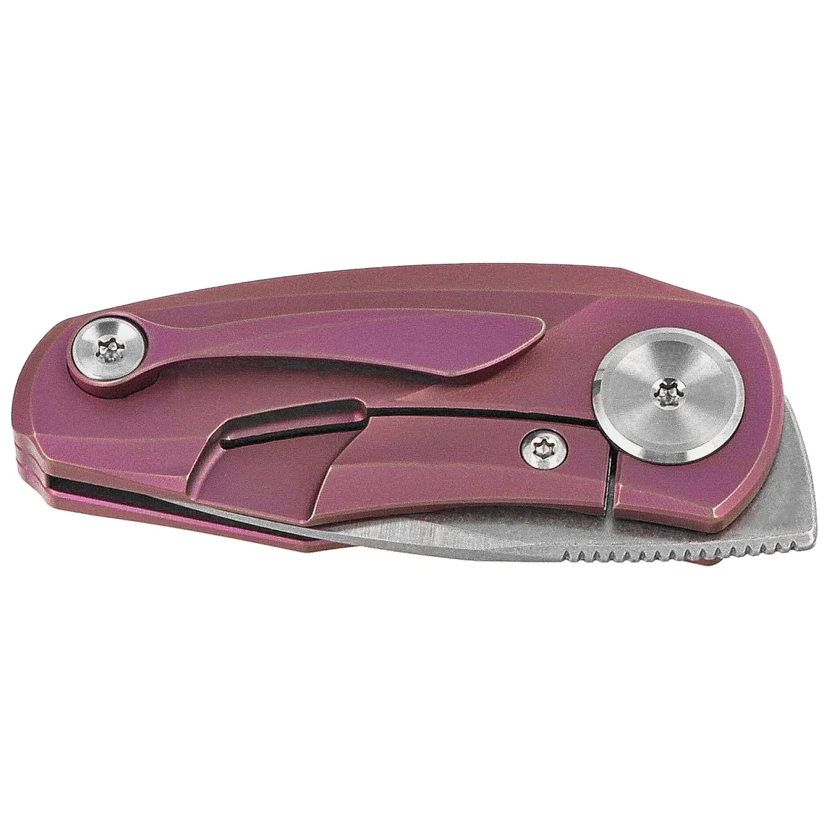 • Tulip Frame Lock Purple Titanium, Stonewashed / Satin elegant EDC knife by Polish designer Ostap Hel. The blade is modeled after Japanese kiridashi, the handle is made of titanium. Extremely lightweight, disappearing easily in a pocket or purse.
