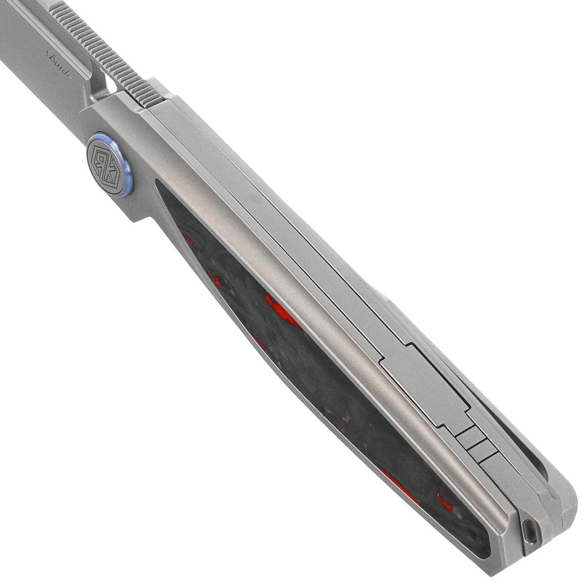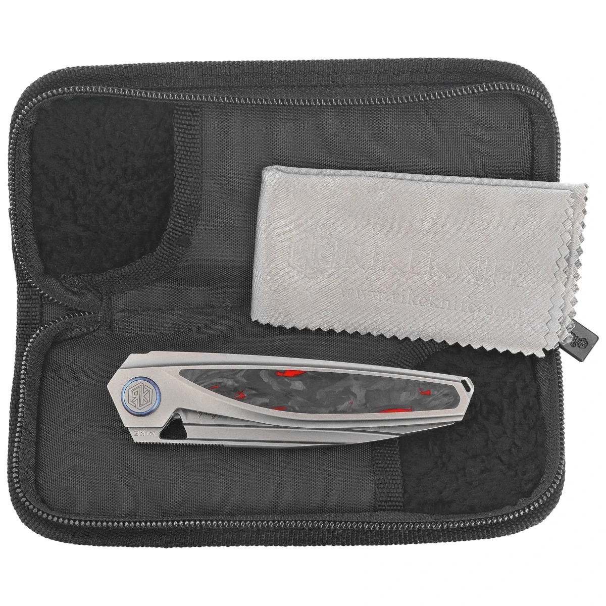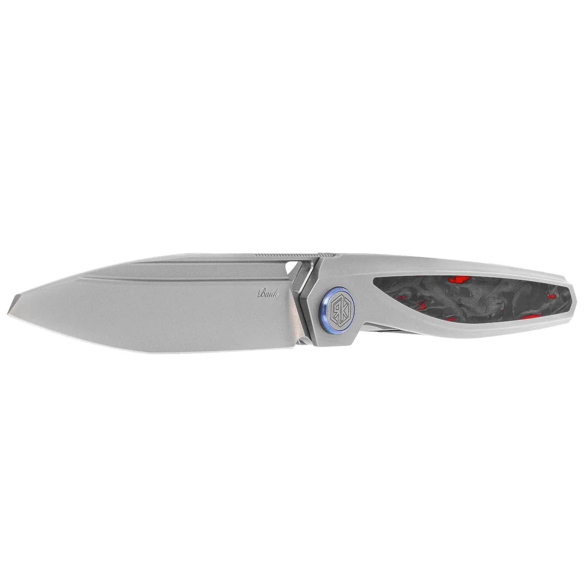 Rike Knife Baidi T Titanium/Red Carbon Fiber, Bead Blasted M390 (RK-Baidi-T-P/RCF)