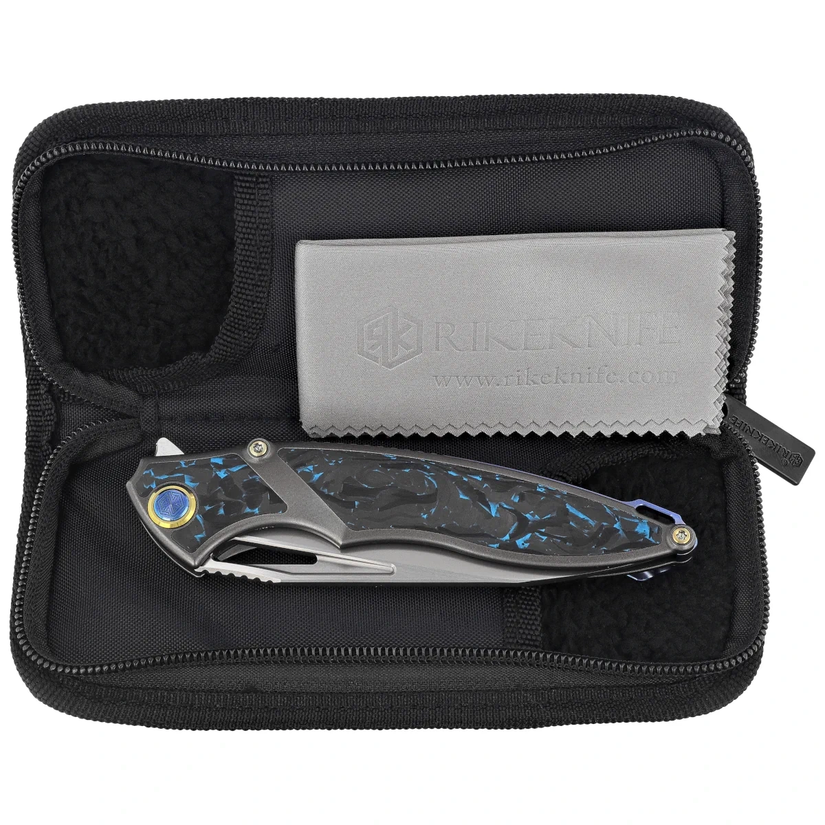 Rike Knife RK 1902 B/CF Titanium/Blue Carbon Fiber, Bead Blasted M390