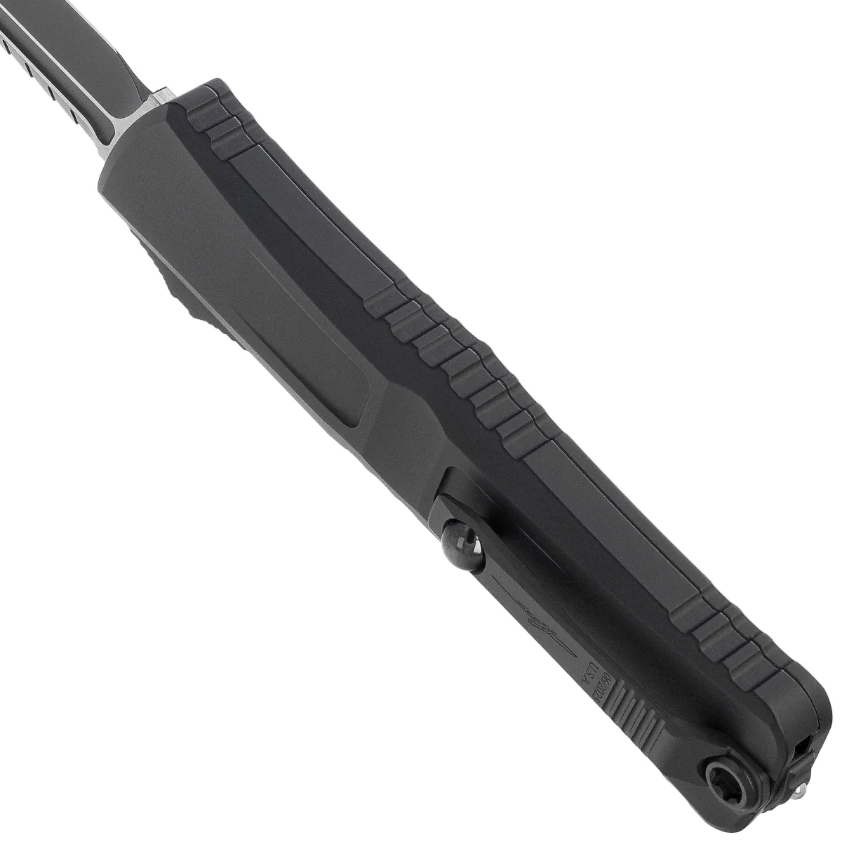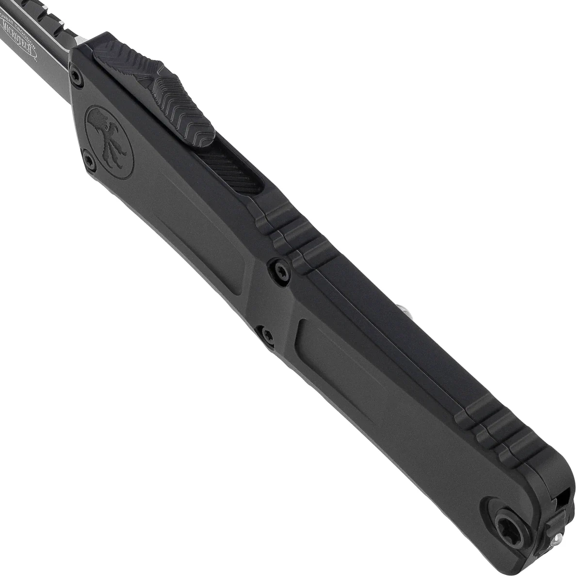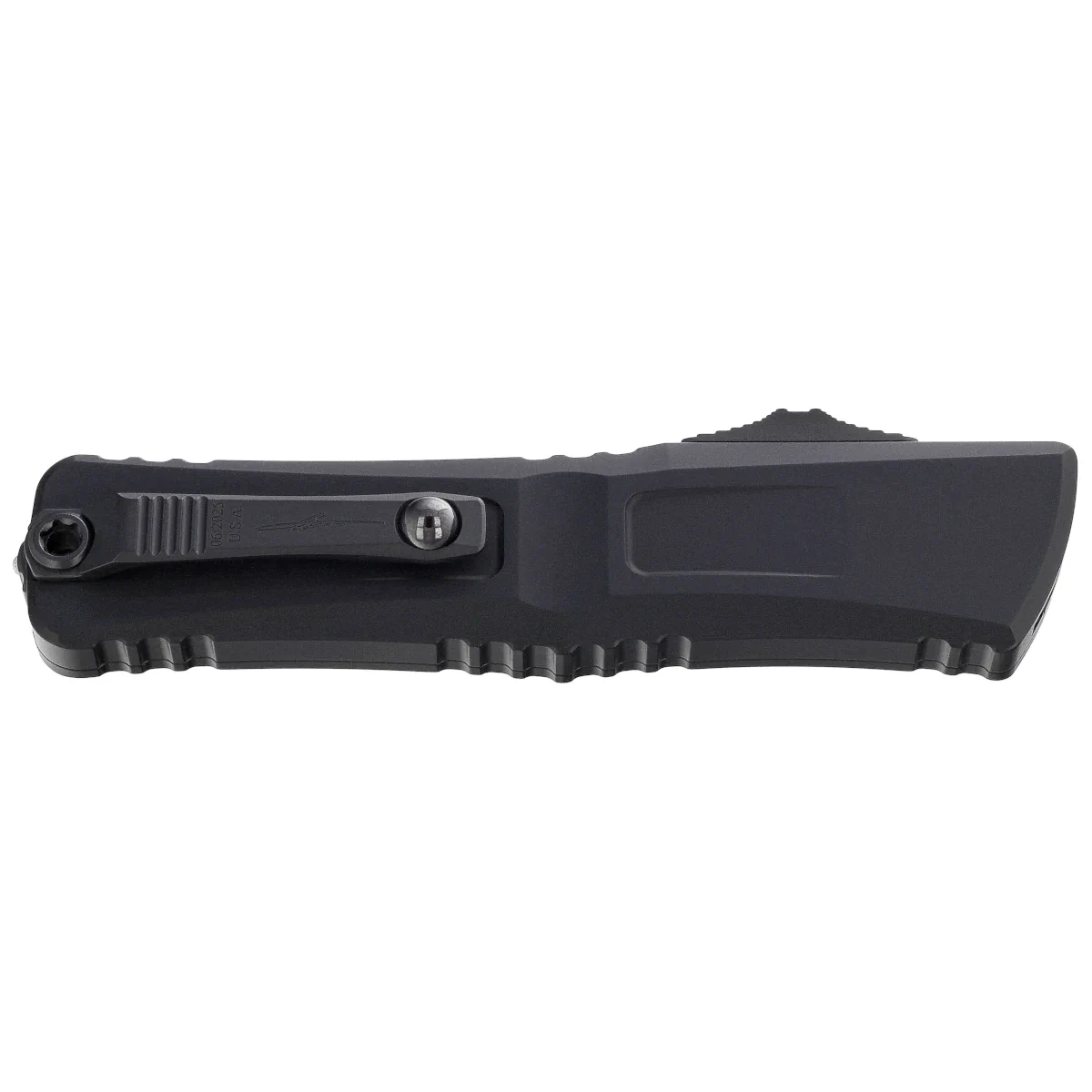 Combat Troodon Gen III Interceptor Signature Black Aluminum, Tactical this largest of the automatic knives is the pinnacle of precision engineering and tactical prowess in the field of OTF (Out The Front) knives. Built for a wide range of utility applications, it boasts a 25% larger size compared to the flagship Troodon. Precisely crafted with a sophisticated and hellishly fast ejection mechanism for the razor-sharp new type of blade - the Interceptor. 100% made and assembled in the USA. Designed by Anthony Marfione, knifemaker and owner of Microtech Knives.