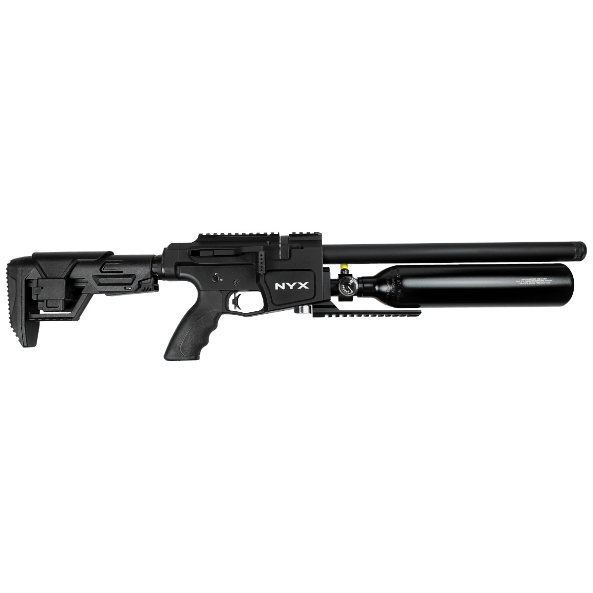• Reximex NYX Compact 4.5 mm – compact, tactical PCP air rifle with Side Lever cocking, shot regulator, fully adjustable AR-style telescopic stock, and integrated suppressor. Available in calibers: 4.5 mm, 5.5 mm, 6.35 mm.