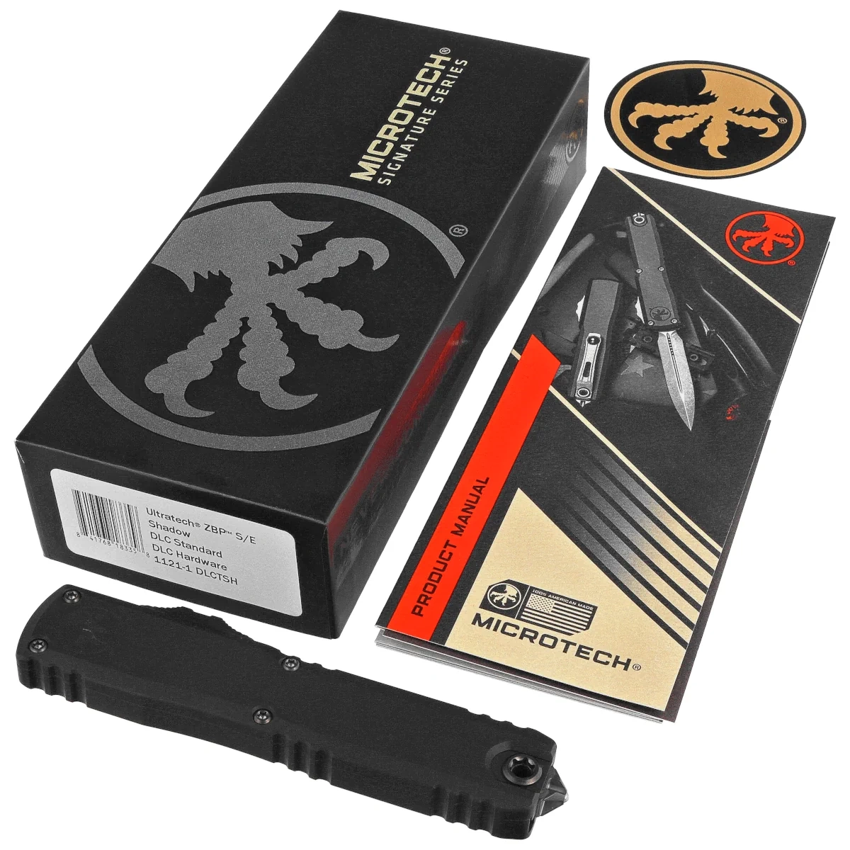• Ultratech Gen 3 ZBP S/E Signature Black Shadow Aluminum, Black Shadow DLC is an upgraded version of Microtech's iconic knife: new glass striker, Crud Kutter system, Dual-Fuel Drive Train and Zero Blade Play™ - no blade play when unfolded.