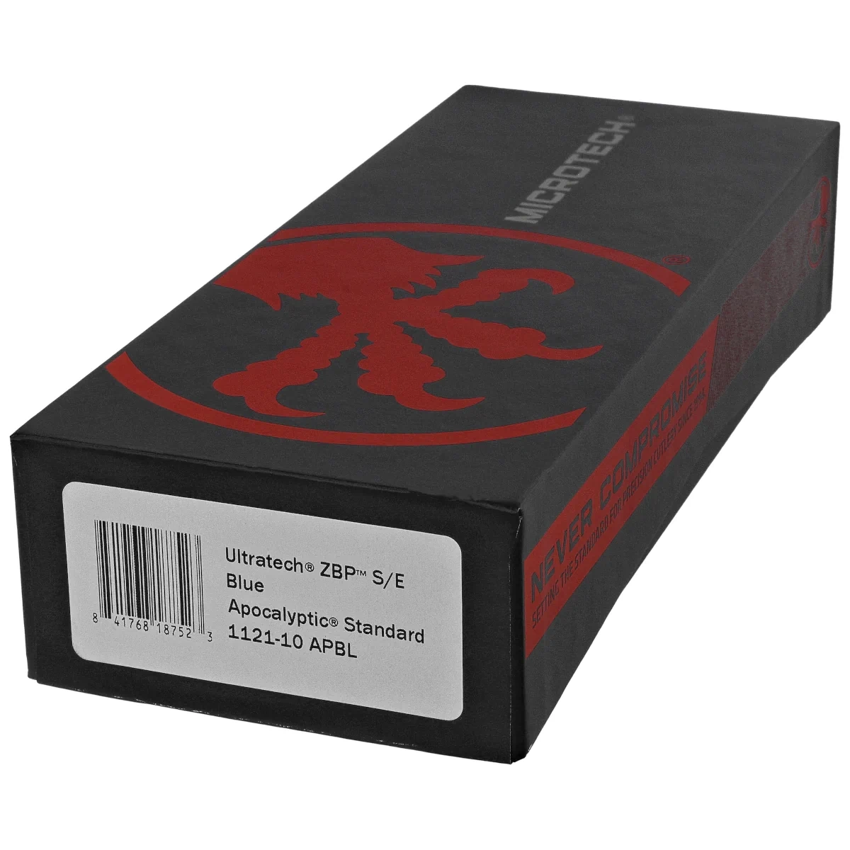 - Ultratech Gen 3 ZBP S/E Blue Aluminum, Apocalyptic is an upgraded version of Microtech's iconic knife: new glass striker, Crud Kutter system, Dual-Fuel Drive Train and Zero Blade Play™ - no blade play when unfolded.