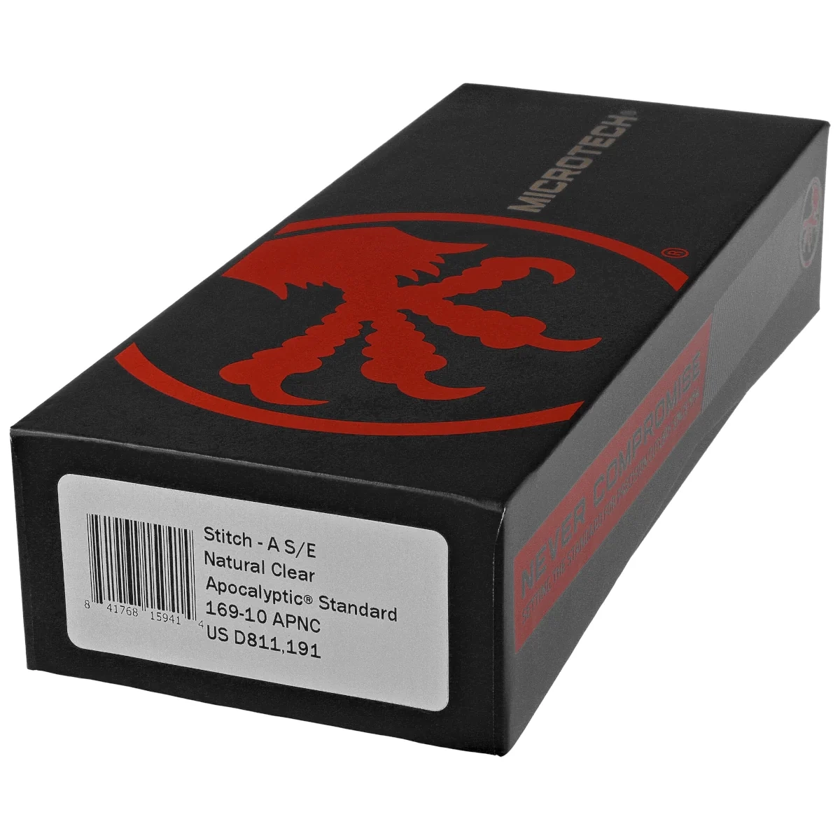 Stitch-A S/E Natural Clear Aluminum, Apocalyptic automatic version of the bold design of the versatile tactical knife, the result of a collaboration between Sebastijan Berenja and Microtech. A wide Blade and a simple handle, comfortable in every grip, give a strong tactical knife made with attention to the smallest details and the best materials. A faithful companion that will never disappoint
