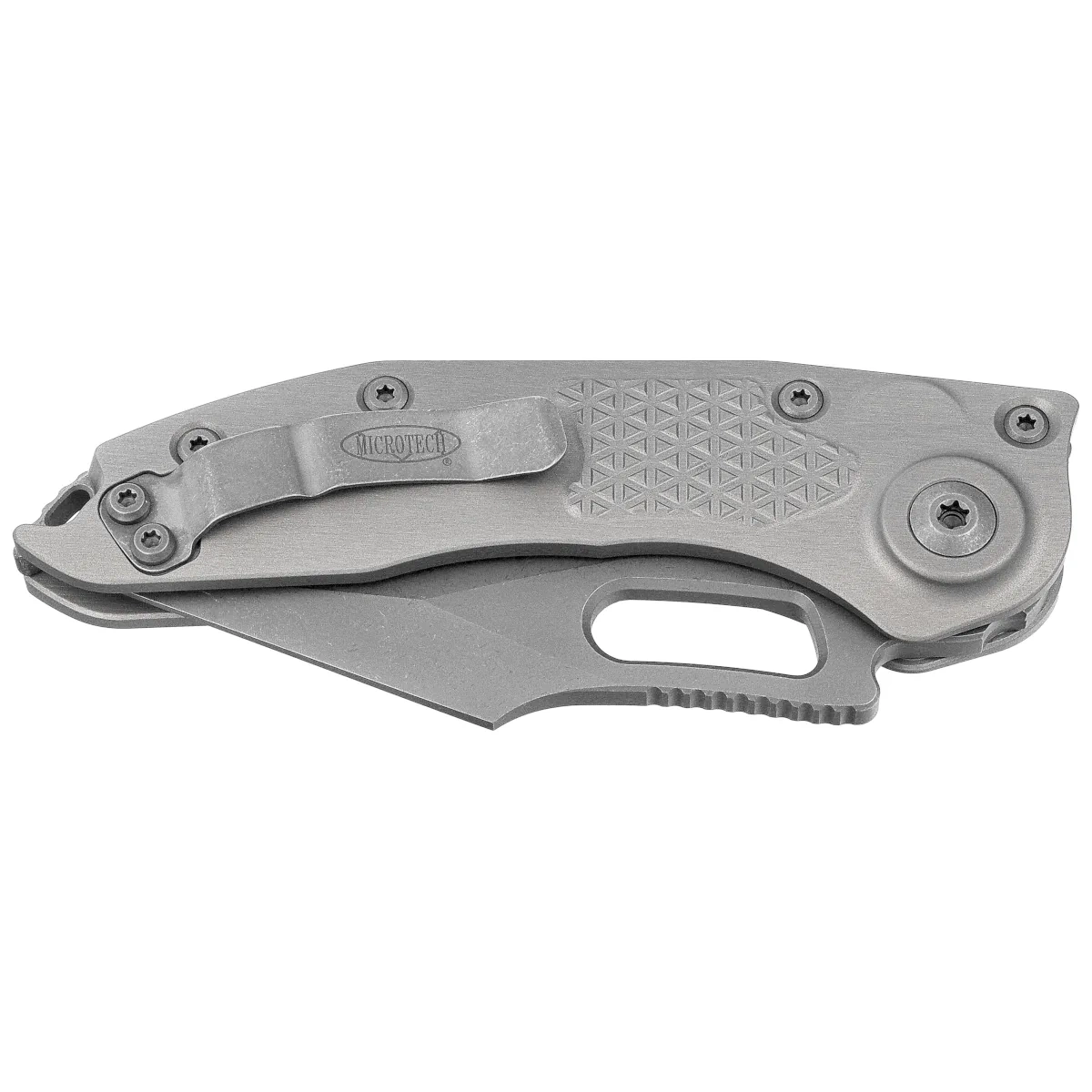 Microtech Stitch-A S/E Automatic Knife Natural Clear Aluminum, Apocalyptic M390 by Borka Blades and Tony Marfione (169-10APNC)