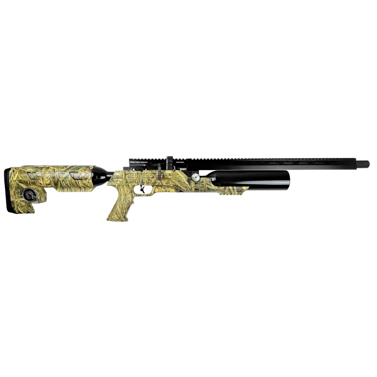 • Niksan Defence Escalade-TC Tactical PCP Air Rifle with Dual Air Cylinders – Up to 270 Shots on a Single Fill! Forest camo stock and a full-length Picatinny rail along the barrel for mounting fixed sights. Available in 4.5mm, 5.5mm, and 6.35mm calibers.
