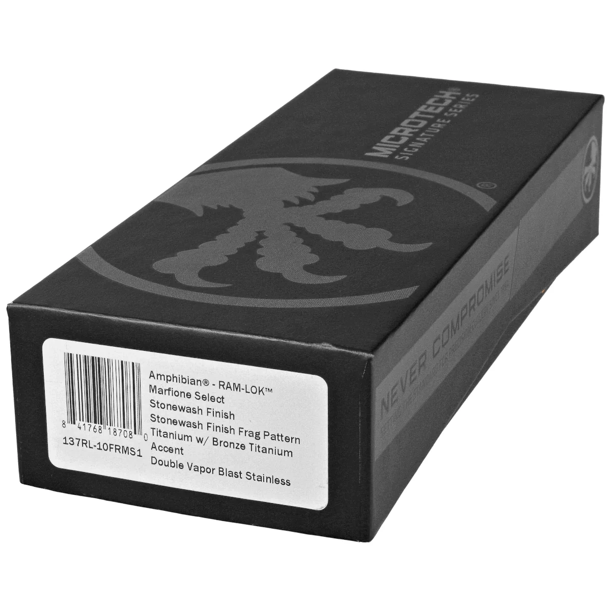 - Marfione Select Amphibian Ram-Lok S/E Stonewashed Frag Pattern Titanium, Stonewashed reissue of folding knife with intuitive RAM-Lock. Superior M390MK blade steel, the result of collaboration between Microtech and Bohler engineers. Titanium handle.