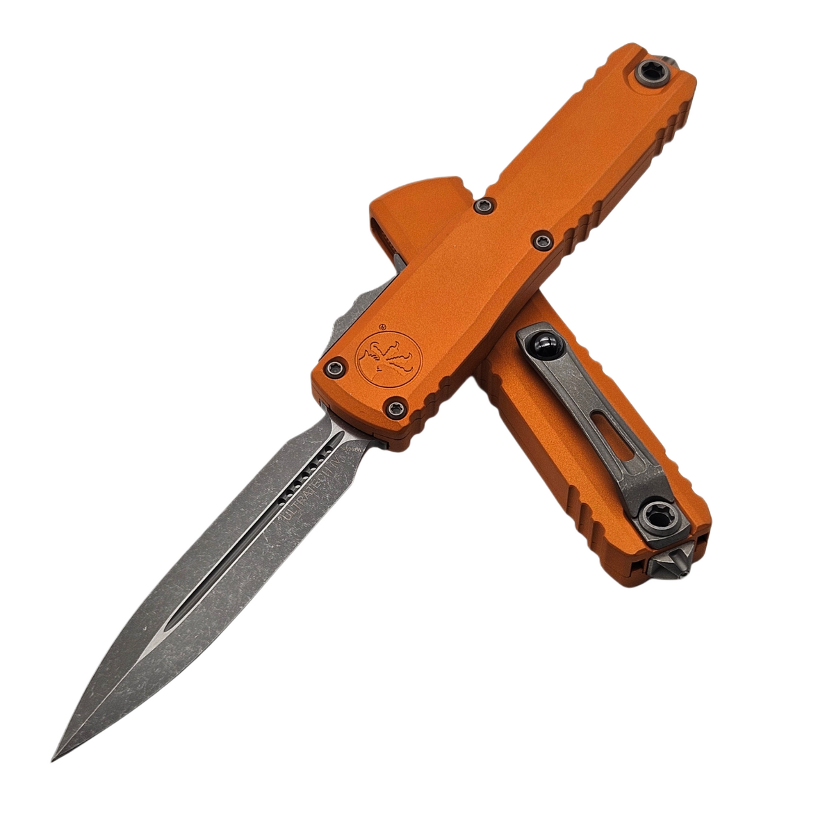 Ultratech OTF Line - Microtech 's flagship OTFLine model , which set the standard for all Out The Front knives. Ultratech 's proprietary trigger spring design, which remains in the “resting” position at all times, except when used. This prevents the spring from fatigue, reducing wear and tear on the internal trigger mechanisms which ensures that the knife will always function effectively. The light weight, the ability to open and close with one hand, the slim shape of the Handle and the sharp blade make it a one-of-a-kind knife, available only from Microtech.