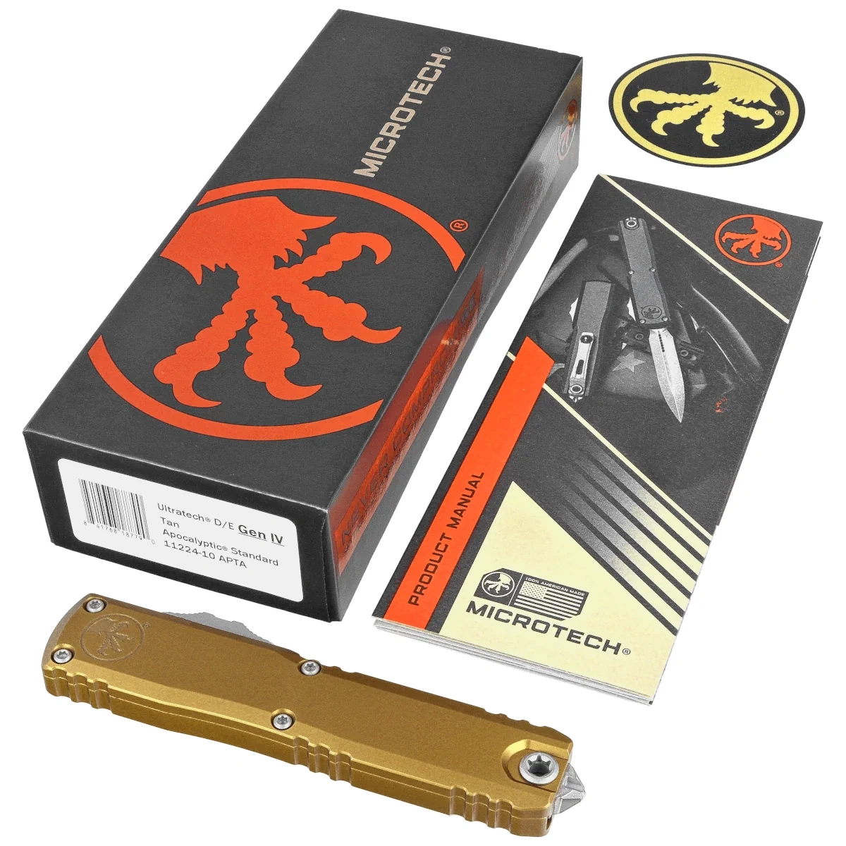 - Ultratech Gen IV D/E Tan Aluminum, Apocalyptic is a full-size OTF automatic knife from Ultratech. Operating in D/A mode, Blade made of Böhler M390MK steel, precision machined aluminum Handle. Designed by Tony Marfione owner of Microtech