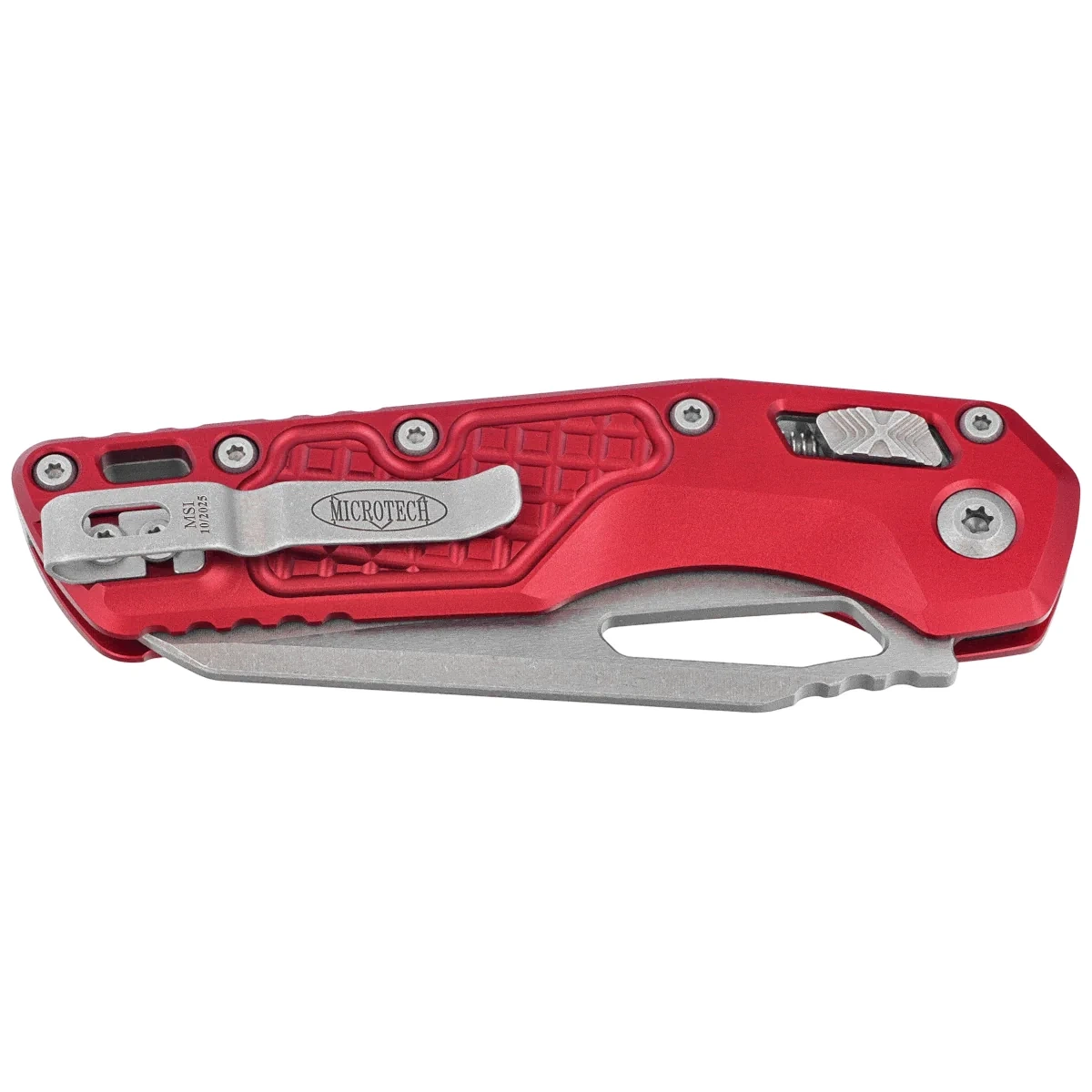 MSI S/E Merlot Frag Aluminum, Apocalyptic folding knife that combines strength, durability and elegance. Its blade is made of excellent M390MK steel , which is the result of a collaboration between two renowned companies - Microtech and Böhler. This steel is known for its exceptional strength and long sharpness retention, making this knife unafraid of any challenge. The intuitive RAM-Lok ensures safety during use. This innovative lock is easy to operate and provides ease of use for both right and left-handed people. The knife's handle is made of aluminum, durable and ergonomic. Its shape is designed to fit perfectly in the hand, ensuring comfort even during prolonged use. This knife is not only a tool, but also a work of applied art. Its designer, Anthony Marfione, founder and owner of Microtech, has taken care of every detail. From the elegant black finish to the satin details, this knife is both beautiful and practical. Whether you're looking for a reliable tool or an elegant accessory, the MSI (Microtech Standard Issue) folder will meet your needs.