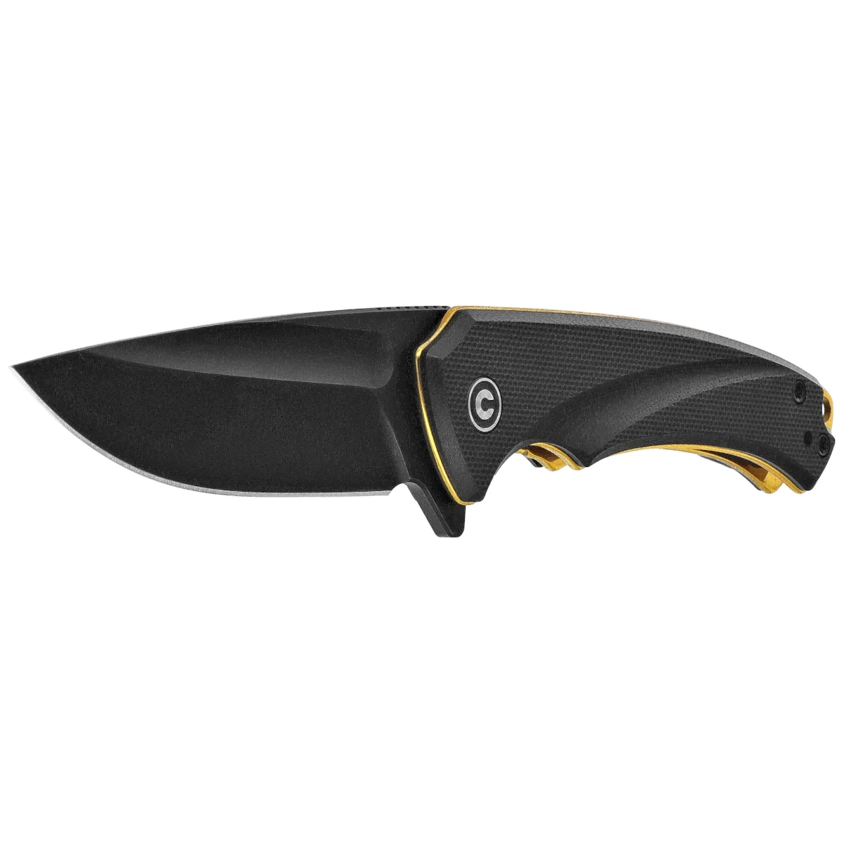 - Voidflare Black G10, Black Stonewashed - an elegant EDC folding knife with a sharp and durable 14C28N steel Blade, set on a lightweight and textured G10 composite Handle. Gold detailing and dynamic lines enhance the modern style.