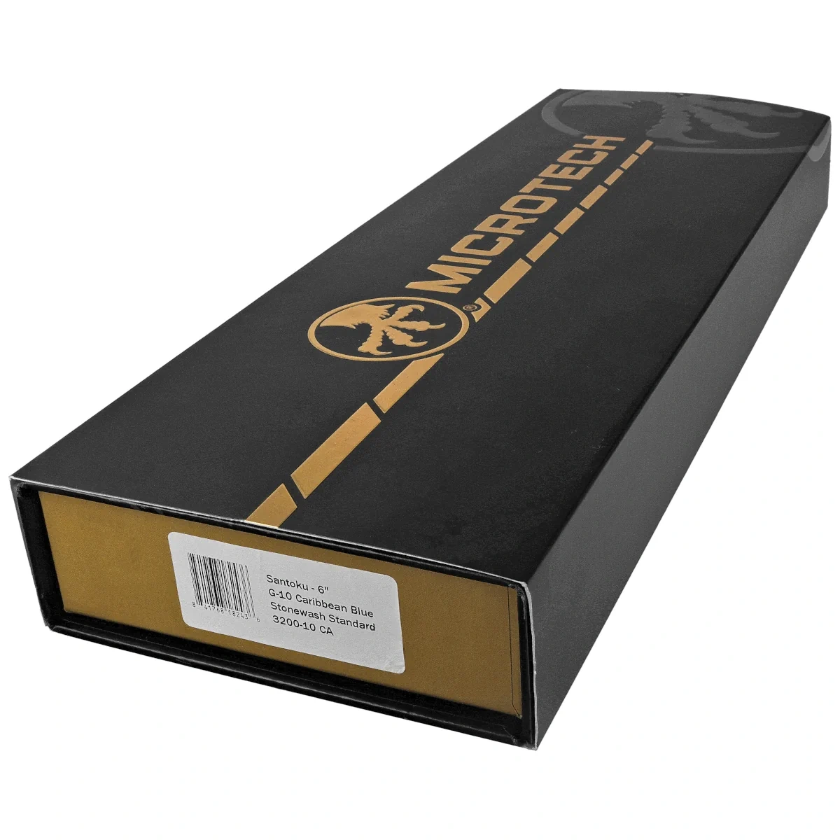 Santoku 6" Caribbean Blue G10, Stonewashed is a modern interpretation of the traditional kitchen knife by one of the most respected American knife brands. Created in the spirit of technical perfection and utilitarian minimalism, it is the perfect tool for professional chefs and enthusiasts of precision cutting. The distinctive silhouette of the santoku is enhanced here with high-end materials and ergonomics refined to perfection. Blade made of advanced M390MK steel offers excellent sharpness retention, full corrosion resistance and microstructure stability, even under heavy use. Its stonewashed finish gives the surface a matte texture that effectively masks traces of use and adds a professional, working character to the blade . With its santoku profile, the knife successfully performs the tasks of portioning, slicing and chopping, while maintaining smooth operation and precise blade guidance. The handle is made of durable G10 composite, a material resistant to moisture, temperature and mechanical factors. Subtle milling improves the grip, and the minimalist geometry of the handle provides stable support for the hand - regardless of the intensity of work. Mounting elements in the form of torx screws increase the rigidity of the design and allow easy disassembly for maintenance. Thanks to the perfectly balanced combination of ergonomics, durability and modern design, the Santoku model from Microtech is perfect both in the professional kitchen and in the hands of the home user who does not consider compromising on quality. The included protective blade guard allows for safe storage and transportation. This is a knife that not only meets expectations - he redefines them.