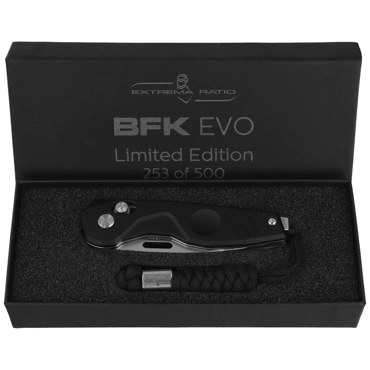 - Extrema Ratio Carry Box, an exclusive edition limited to 500 copies, containing the BFK EVO LE No 253/500 folding knife, cap, wallet and carbon card. A combination of tactical functionality, Italian design and collector prestige.