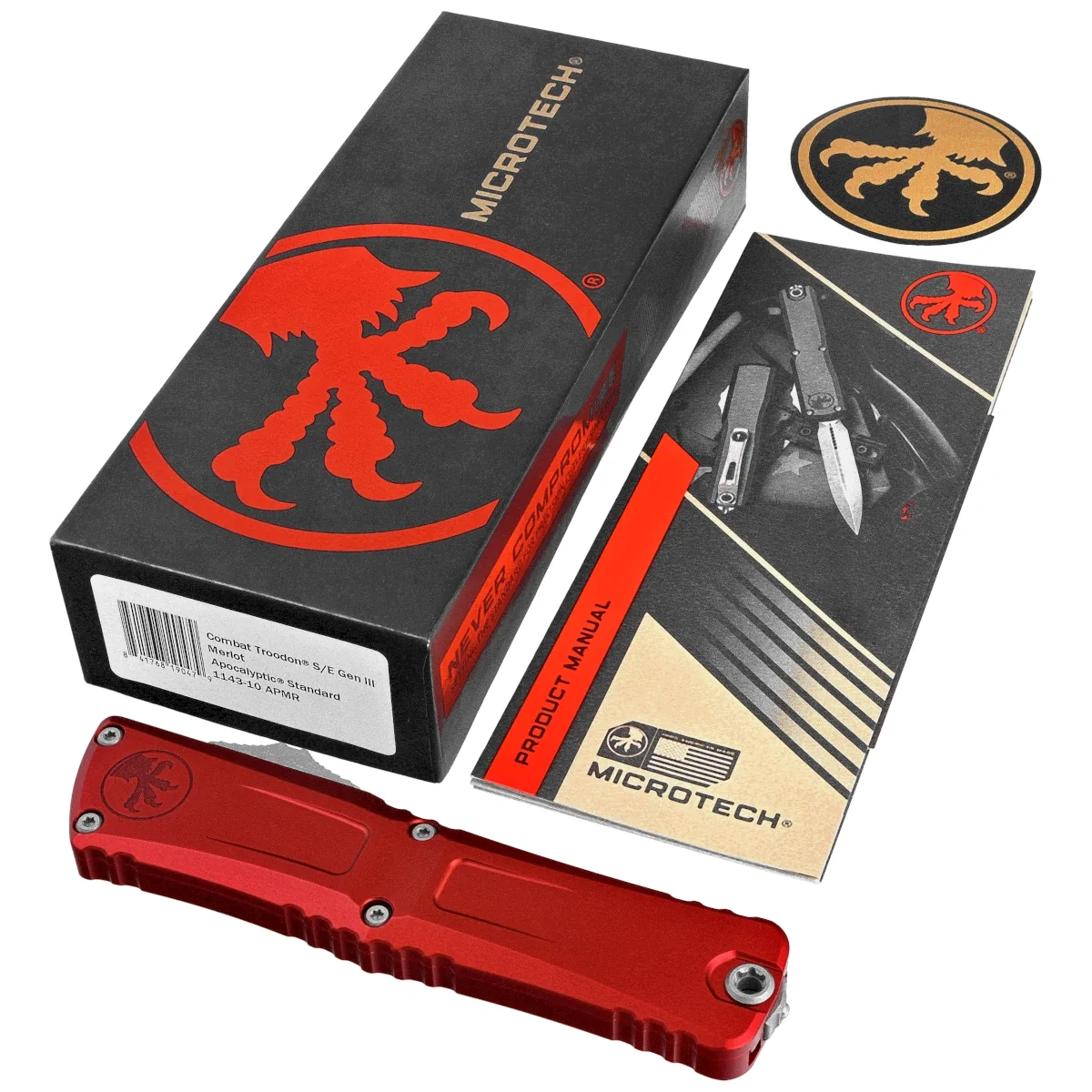 Microtech Combat Troodon Gen III S/E OTF Knife Merlot Aluminum, Apocalyptic M390MK by Tony Marfione (1143-10APMR)