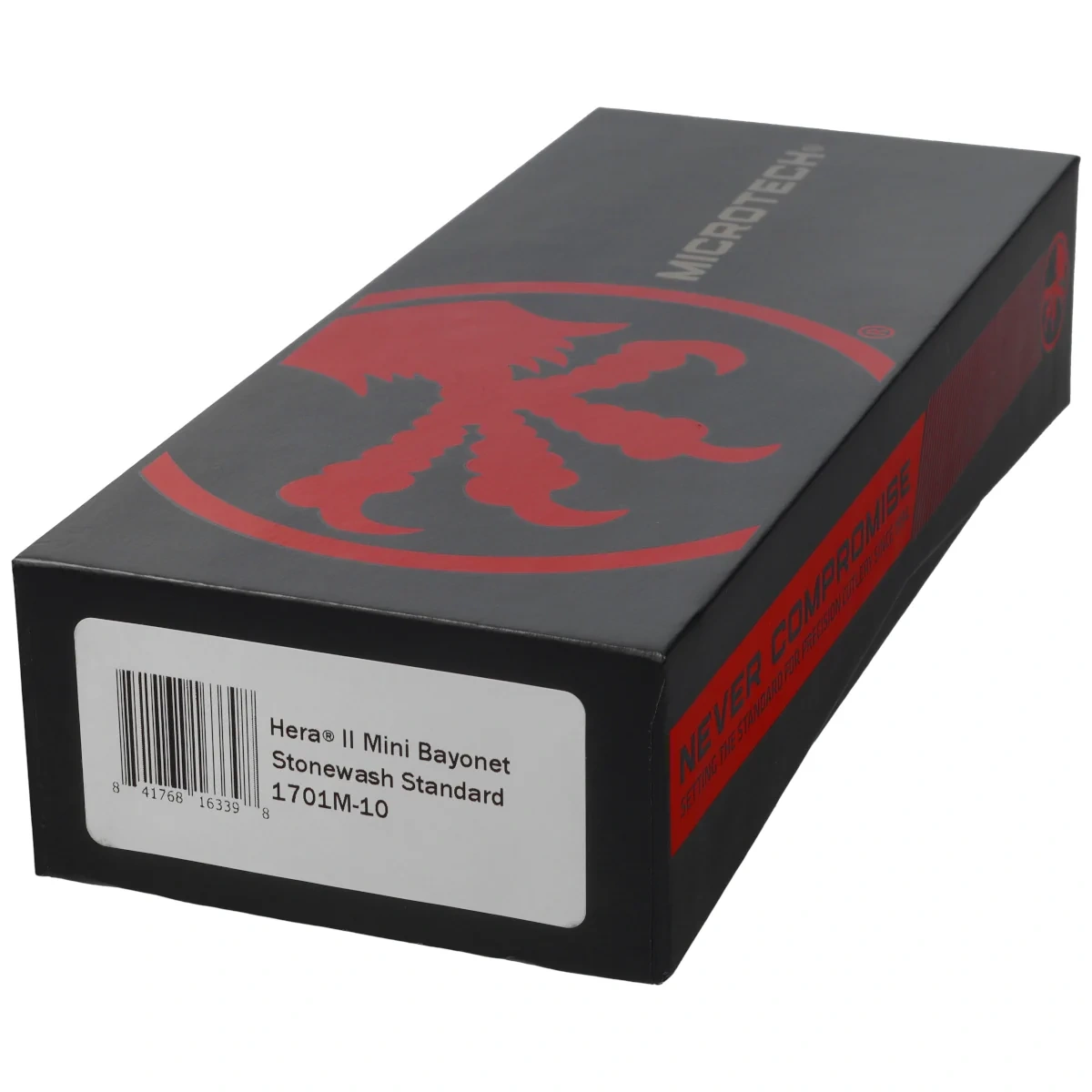 308,68 €Hera II Mini Bayonet Black Aluminum, Stonewashed compact version of one of the best and versatile OTF (Out The Front) automatic knives equipped with a Bayonet blade . Modeled on the iconic Troodon automatic , it is a link between EDC models and typically tactical designs . The automaton, with above-average durability, operates in D/A (Double Action) mode, providing instant, strong and secure opening and closing of the blade. The model is distinguished by the excellent fit of the parts and the highest quality finish. Design by Anthony Marfione, renowned knifemaker and owner of Microtech Knives.
