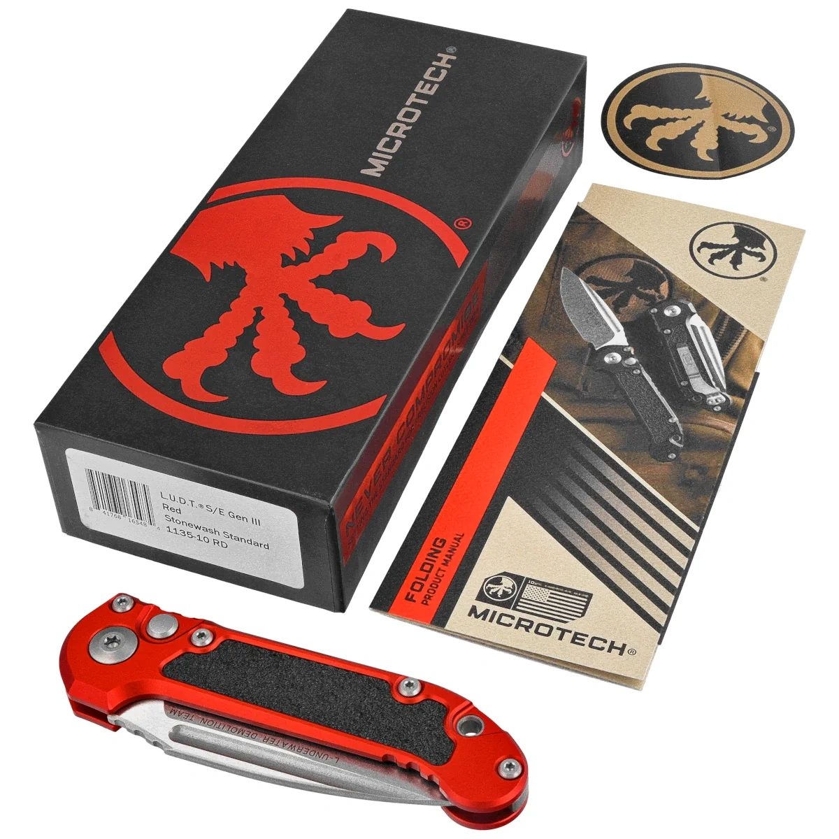 Microtech LUDT Gen III S/E Automatic Knife Red Aluminum, Stonewashed M390MK by Tony Marfione (1135-10RD)