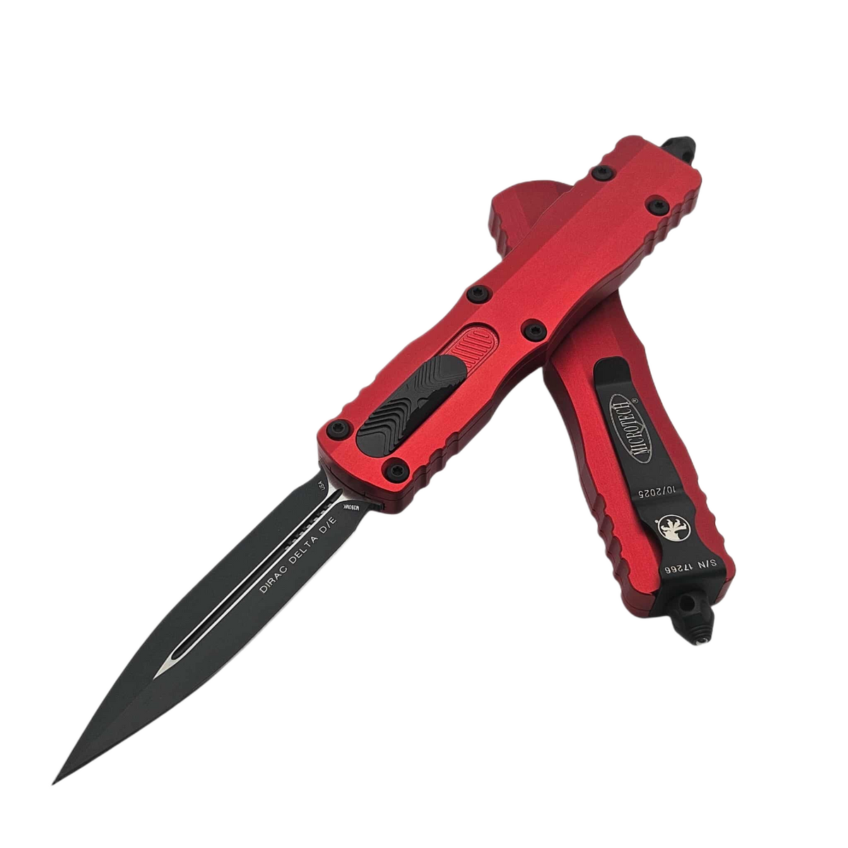 - Dirac Delta D/E Red Aluminium, Black Larger version of the OTF automatic knife from the Dirac series. D/A mode, equipped with a fast blade ejection mechanism. Slider button on the side of the handle. Designed by Tony Marfione.