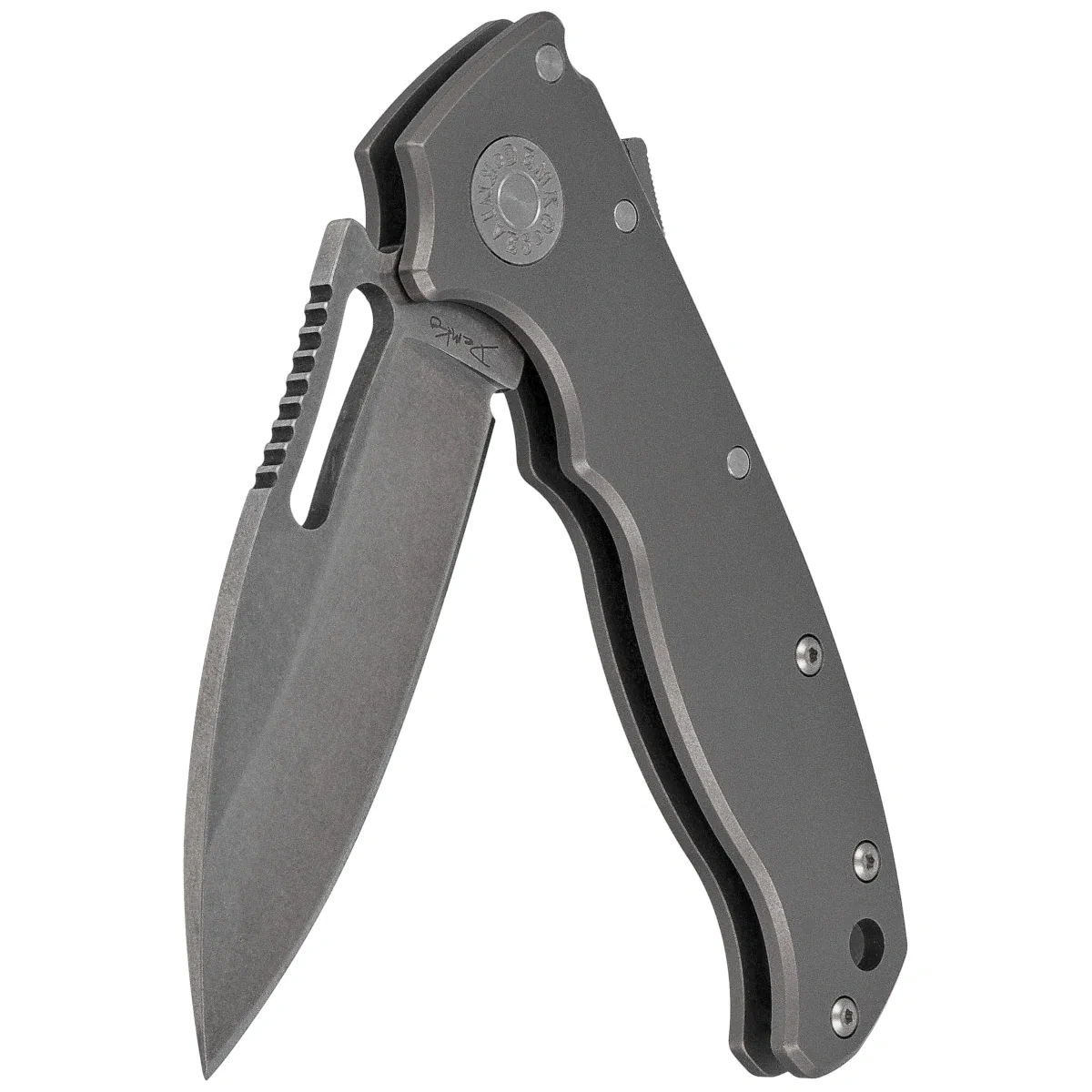 - AD20.5 Slicer Shark Smooth Titanium, Stonewashed, premium compact folding knife with milled titanium Handle, CPM 3V steel Blade and patented Shark-Lock™. Designed by Andrew Demko for the most demanding users.