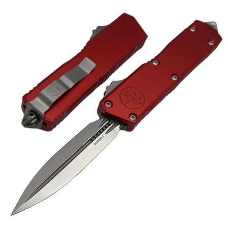 Microtech Scarab II Gen III Executive D/E OTF Knife Red Aluminum, Stonewashed M390MK by Tony Marfione (1175-10RD)