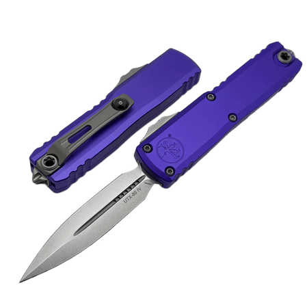 Microtech UTX-85 Gen IV D/E OTF Knife Purple Aluminum, Stonewashed M390MK by Tony Marfione (12324-10PU)